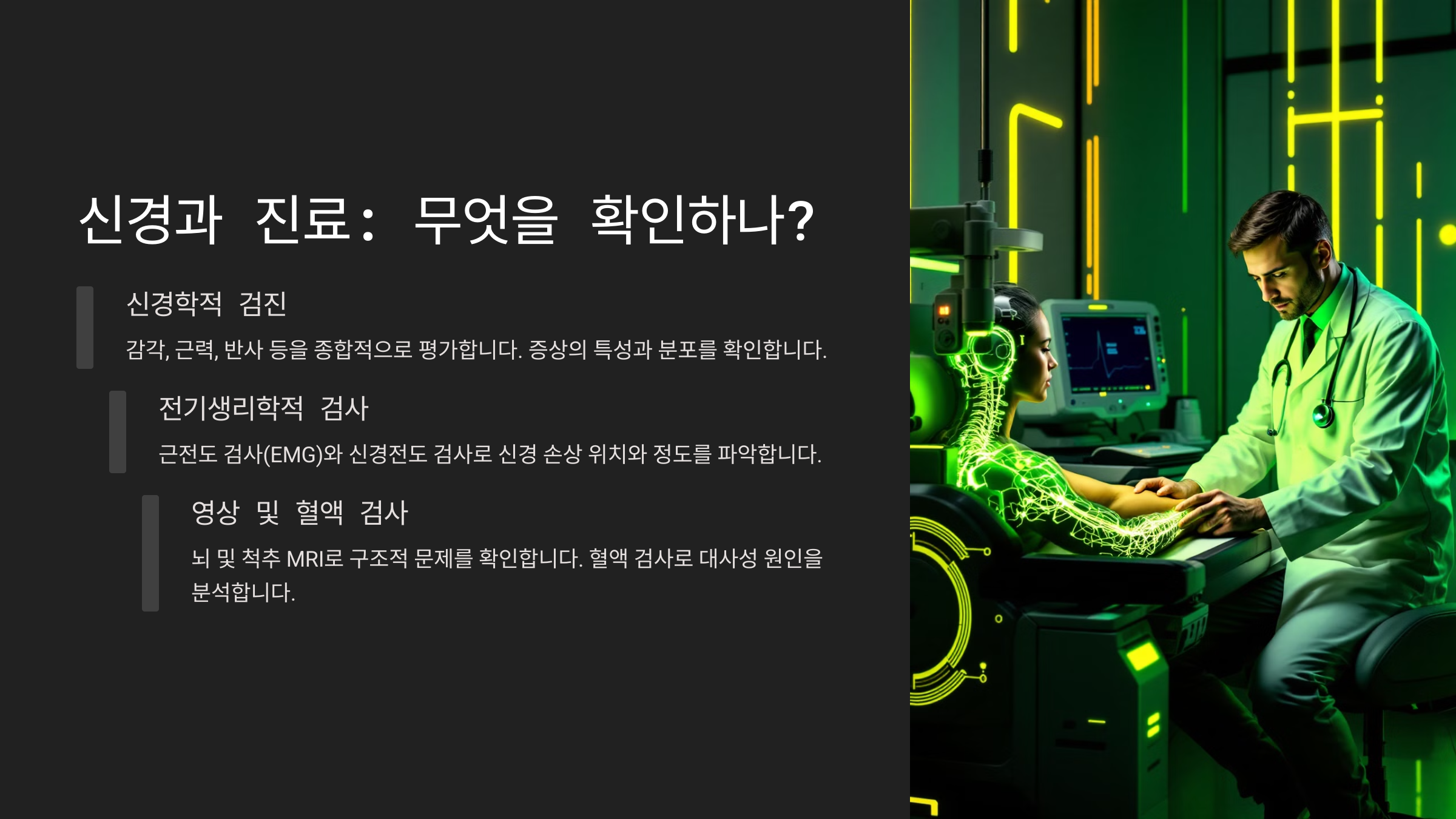 그리고 평소 앓고 있는 기저질환, 복용 약물 리스트, 가족력도 함께 준비하는 것이 좋아요. 특히 당뇨, 고혈압, 갑상선 질환이 있는 경우 신경 이상과 연결될 수 있으므로 반드시 언급하는 게 필요해요.