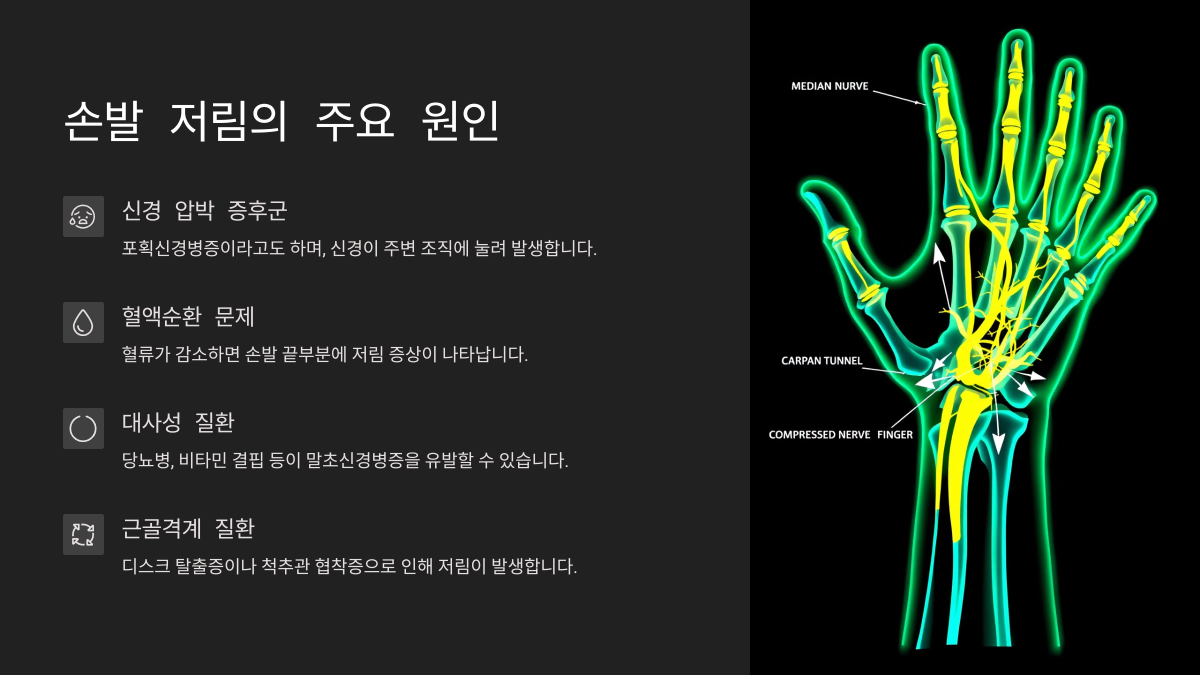 손발 저림의 원인은 매우 다양해요. 단순히 피가 안 통하는 문제일 수도 있지만, 말초신경이나 중추신경 이상, 혹은 근골격계 문제일 수도 있답니다. 그래서 정확한 진료과 선택이 정말 중요해요. 대부분 사람들이 ‘어디가 문제일까?’ 고민만 하다가 병원 가기를 미루는 경우도 많죠. 이럴 땐 먼저 증상의 원인을 예상해보는 게 좋아요.