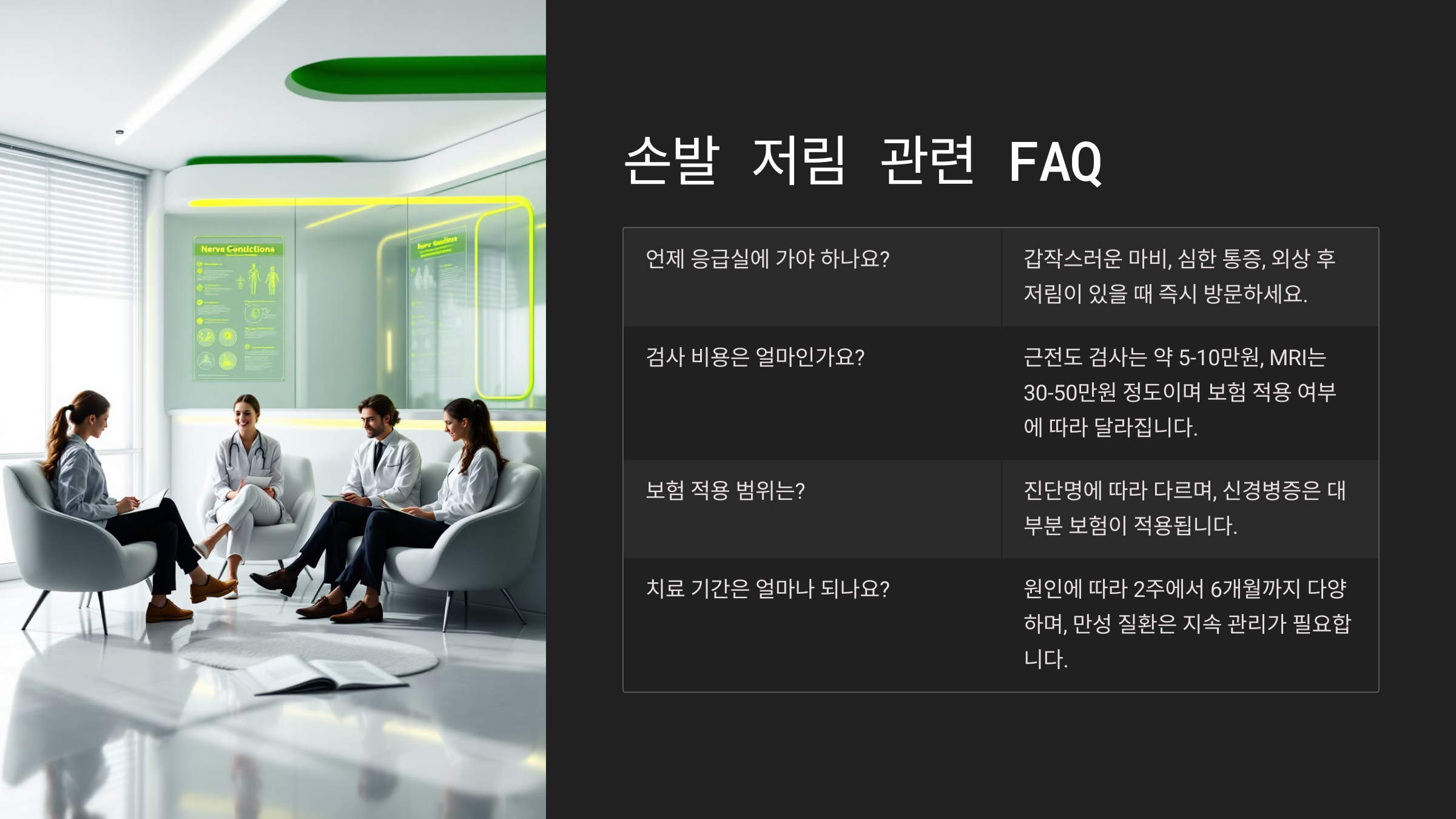 이제 손발 저림에 대해 자주 묻는 질문들을 모아볼게요. FAQ 섹션에서 실질적인 답변들까지 확인해보세요! 👇