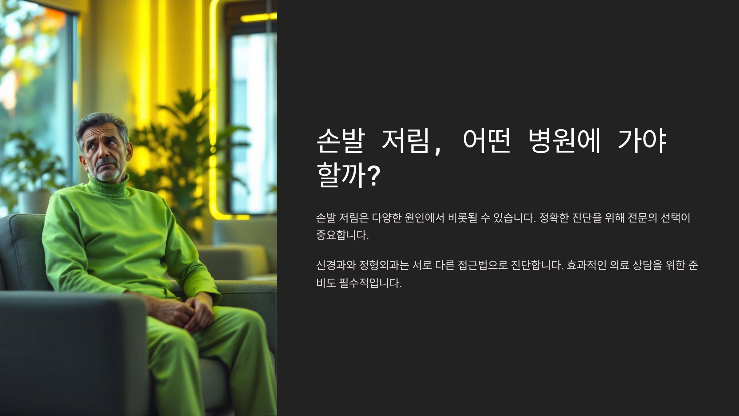 손발 저림이 계속된다면 반드시 관련 전문의를 찾아야 해요. 그런데 ‘신경과 전문의’, ‘정형외과 전문의’ 중 누구를 만나야 할까 헷갈리는 경우 많죠? 단순히 유명한 병원을 찾는 것도 좋지만, 본인의 증상에 맞는 전문의를 찾는 게 훨씬 더 중요해요.