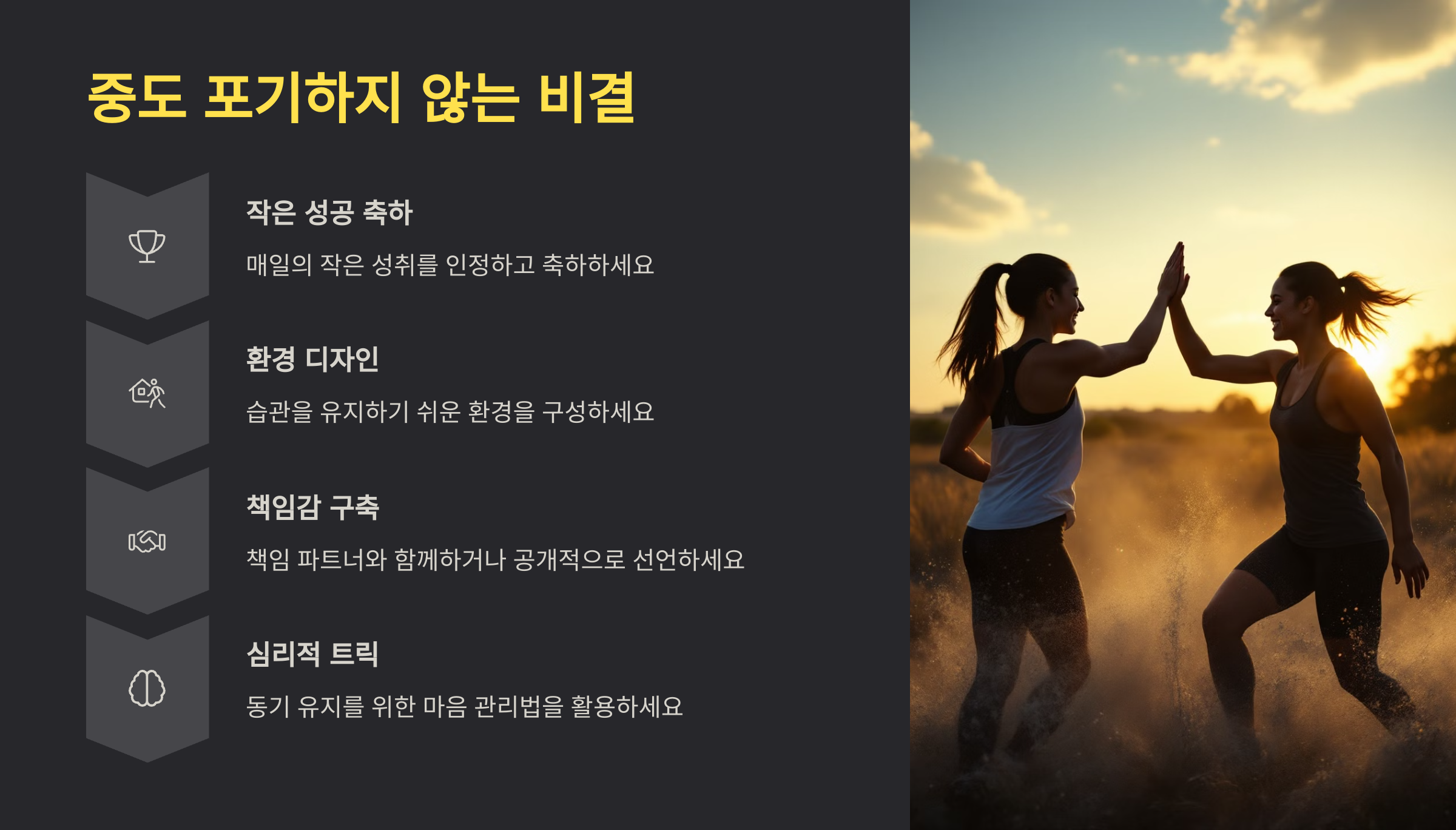 예를 들어, 아침에 운동 루틴을 만들었다면 운동복을 전날 침대 옆에 꺼내두는 것만으로도 실행 확률이 확 올라가요. 의지력을 테스트하지 않아도 되는 환경, 그게 진짜 비밀이에요.
