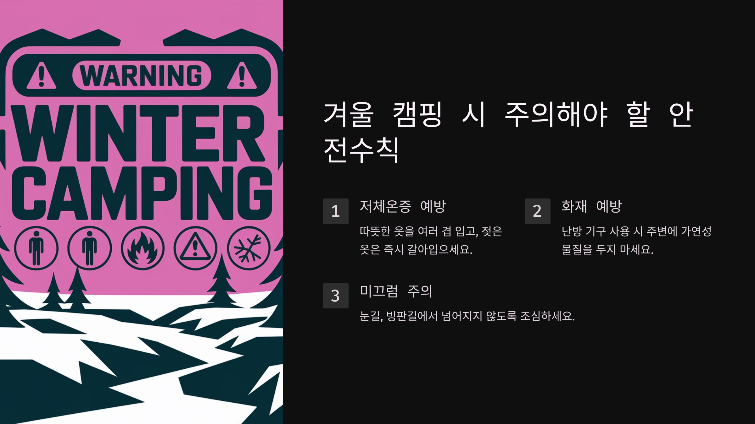 ⚠️ 겨울 캠핑 위험 요소 & 대처법