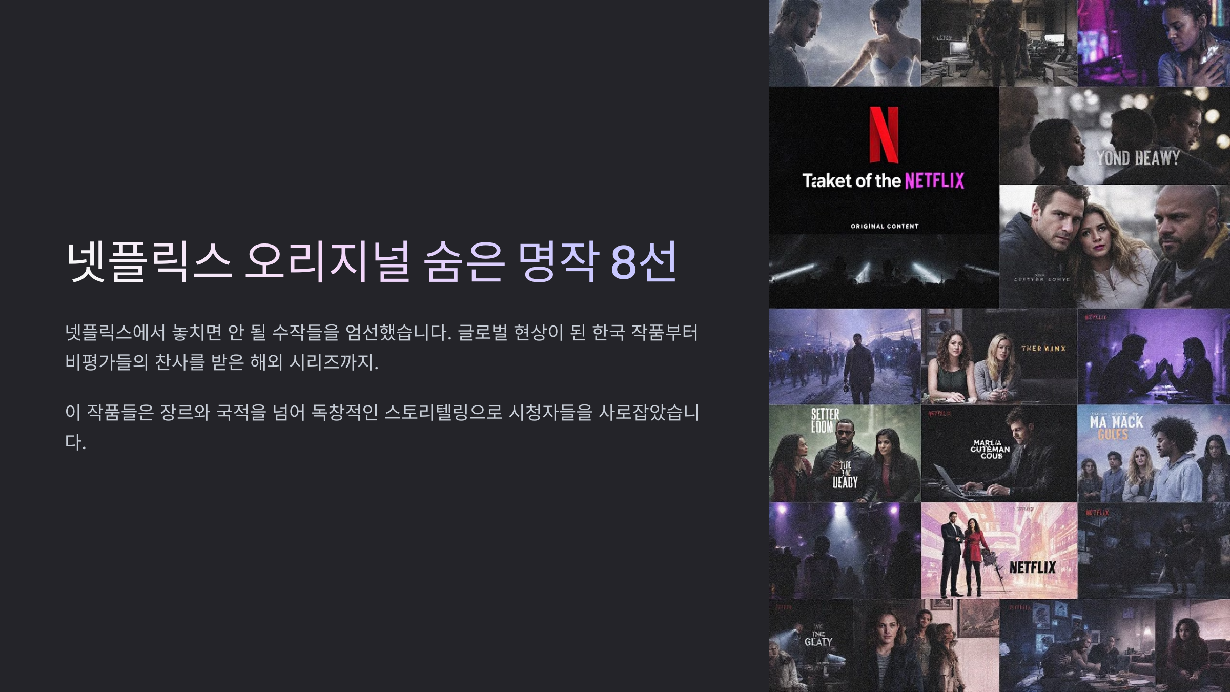 이 정도의 몰입감을 주는 작품을 찾는 게 쉽지 않은데, 넷플릭스는 그런 보석들을 많이 숨겨놨어요. 👀