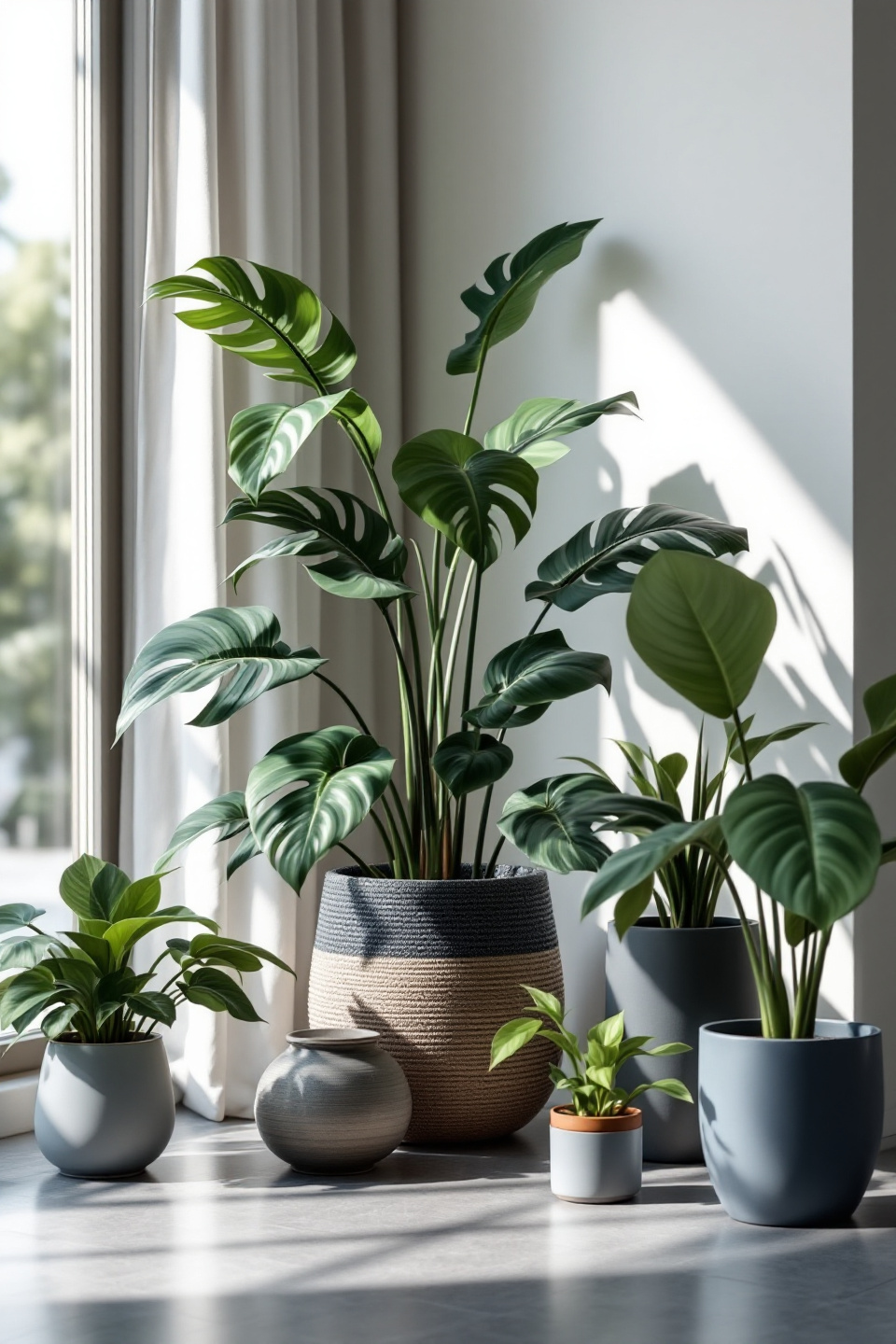 예를 들어, 햇빛이 잘 드는 거실엔 몬스테라, 유칼립투스 같은 중대형 식물을 배치하면 시각적으로도 안정감을 줄 수 있어요. 풍성한 초록잎이 넓은 공간과 조화를 이루면서 인테리어 효과도 훌륭하죠.