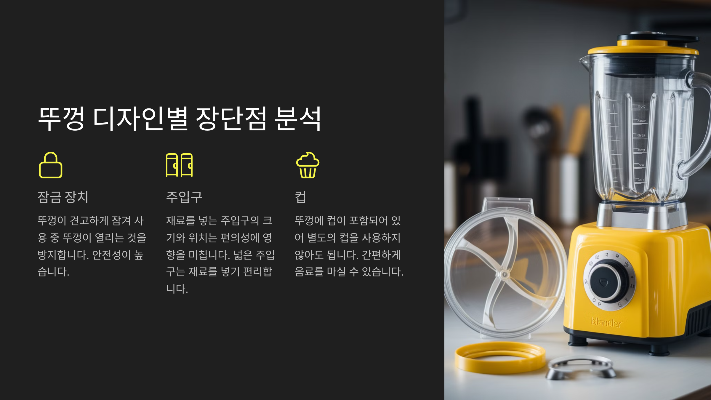 믹서기의 뚜껑 디자인은 단순한 것 같지만, 사용 편의성에 큰 영향을 줘요. 잘못된 디자인을 선택하면 내용물이 새거나, 세척이 불편할 수도 있어요.