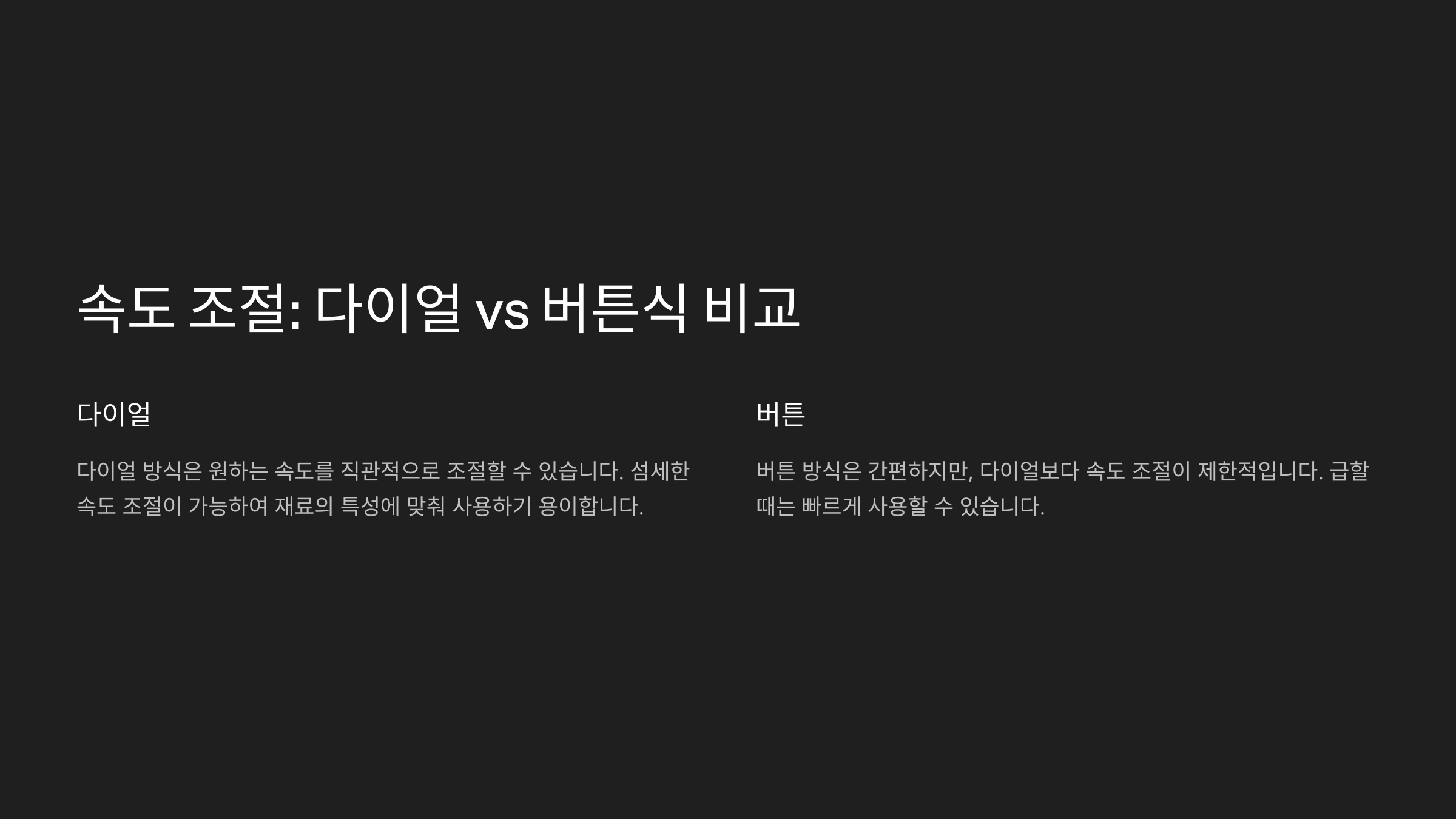 | 속도 조절 | 미세한 조절 가능 | 정해진 속도 사용 |