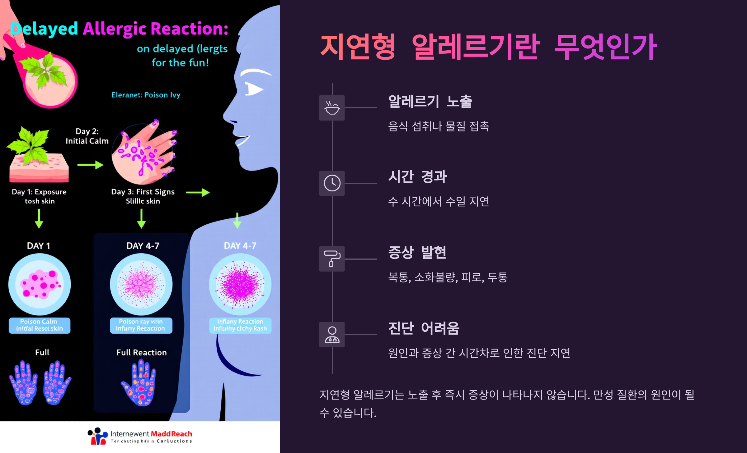 다음은 많은 분들이 생소하게 느끼는 '지연형 알레르기'에 대해 설명할게요. 바로 이어서 아래에서 확인해보세요! ⏳