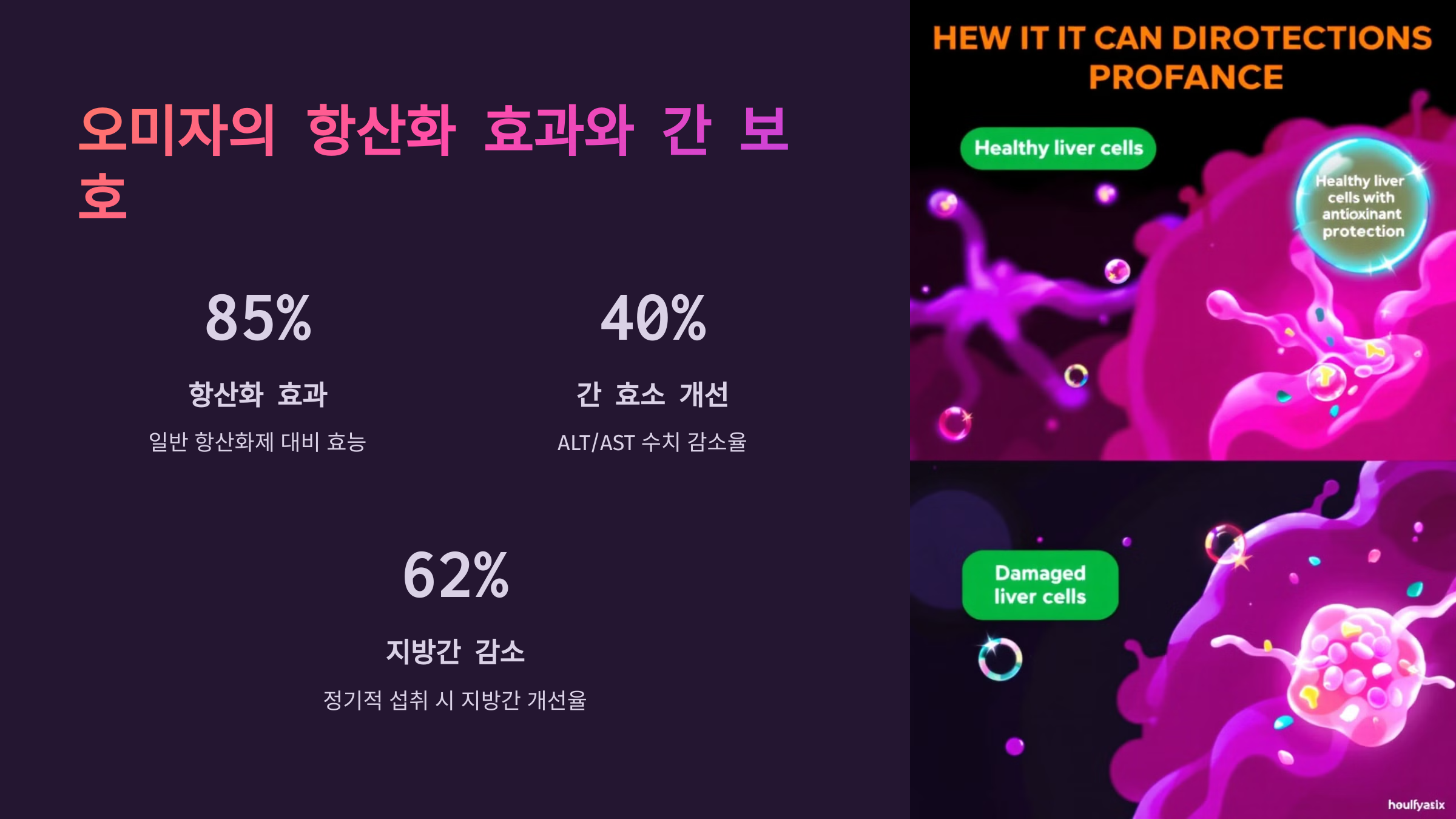 간은 체내 독소를 걸러내는 과정에서 활성산소와 싸워야 해요. 이때 항산화력이 약하면 간세포가 손상되고, 기능 저하로 이어질 수 있죠. 오미자에는 강력한 항산화 성분들이 풍부해서 이 과정을 돕는 데 탁월한 효과를 보여줘요.