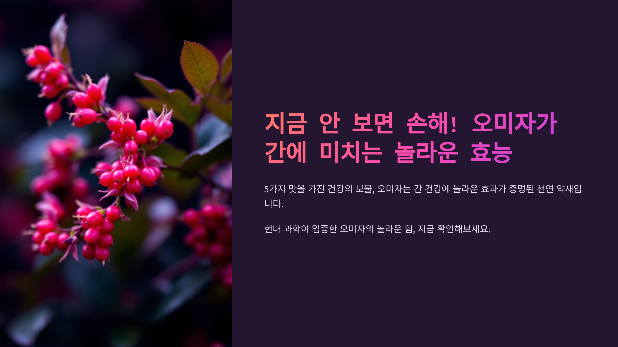 이처럼 오미자의 유효 성분들은 단순한 건강 보조를 넘어서, 실제 간 기능의 회복과 유지에 직접적으로 작용해요. 요즘같이 음주나 스트레스, 과로가 많을 때 간 건강을 챙기려면 오미자는 정말 든든한 자연 건강식품이에요.