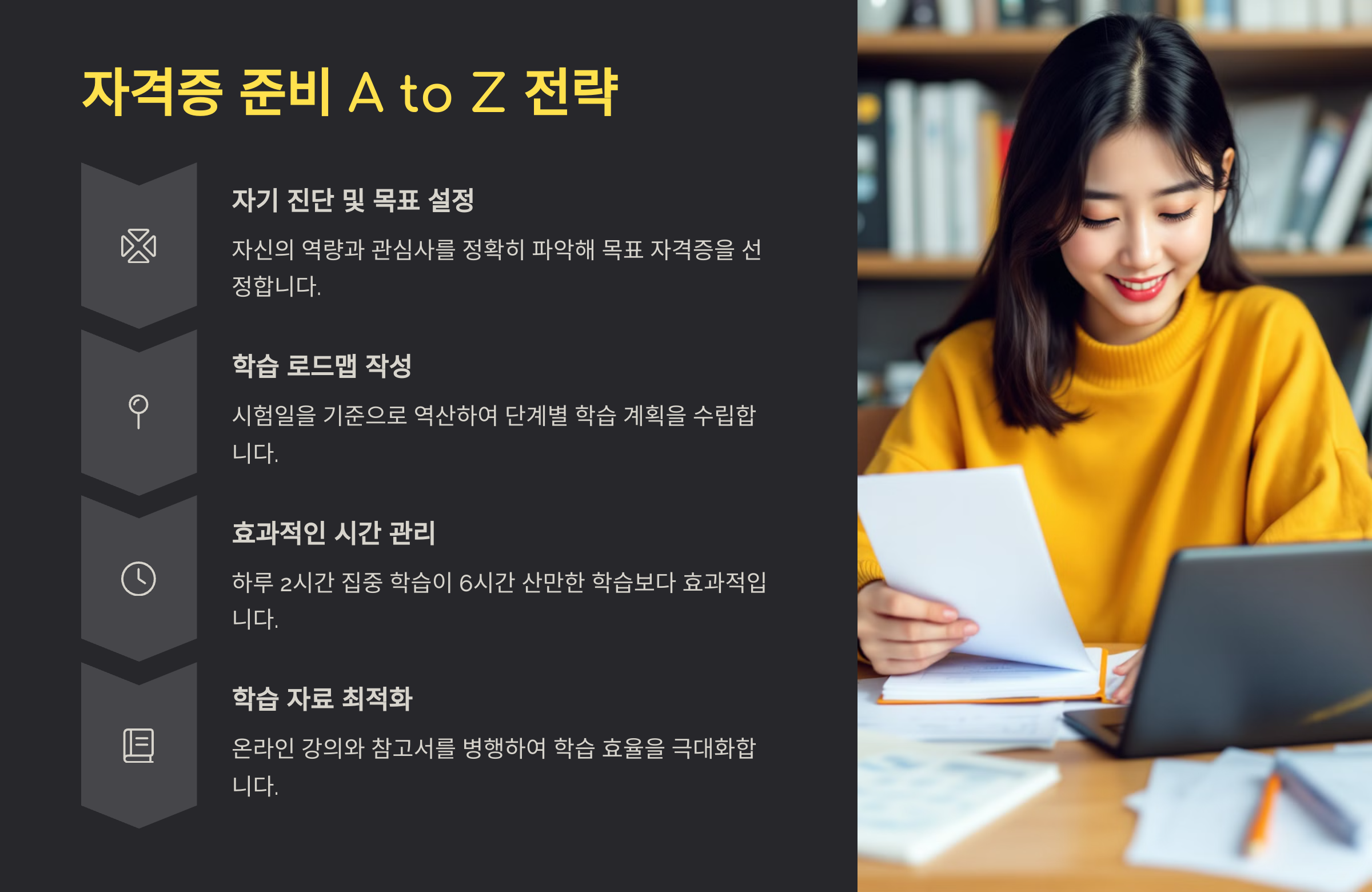 짧은 시간에 자격증을 따기 위해서는 ‘선택과 집중’이 필수예요. 남들이 다 한다고 따라가지 말고, 나에게 필요한 부분만 정확히 골라 집중하는 게 정답이에요. 시간이 부족할수록 똑똑하게 움직여야 해요! ⏳