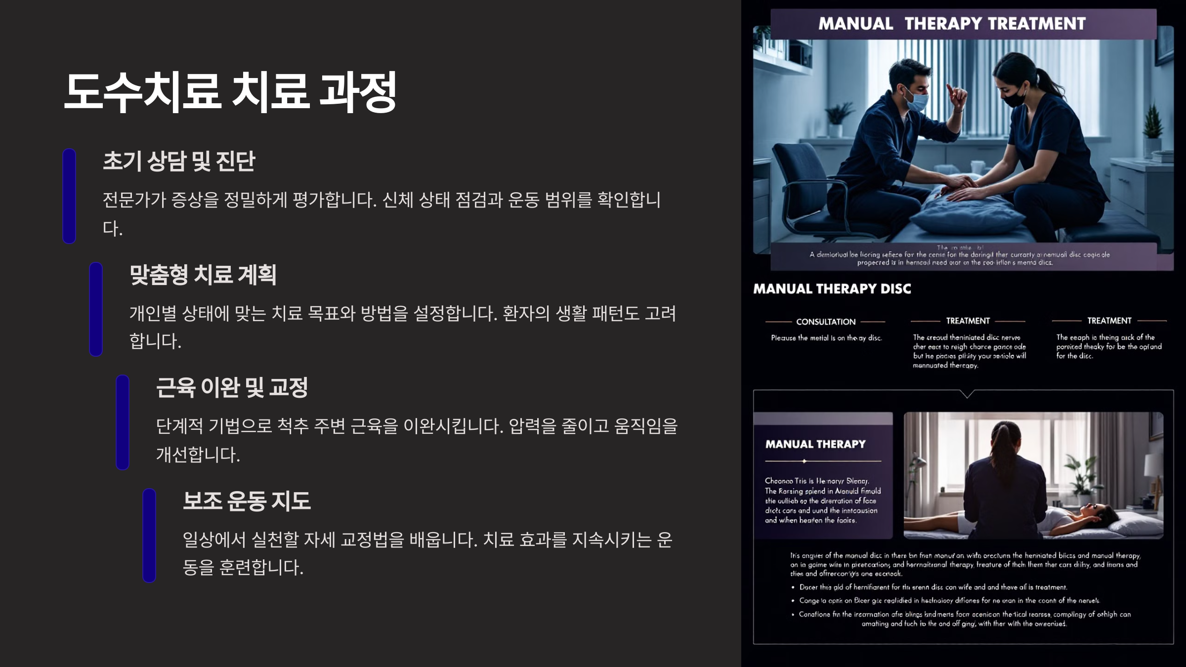 | 치료 방식 | 근육 이완, 관절 정렬, 신경 안정 |