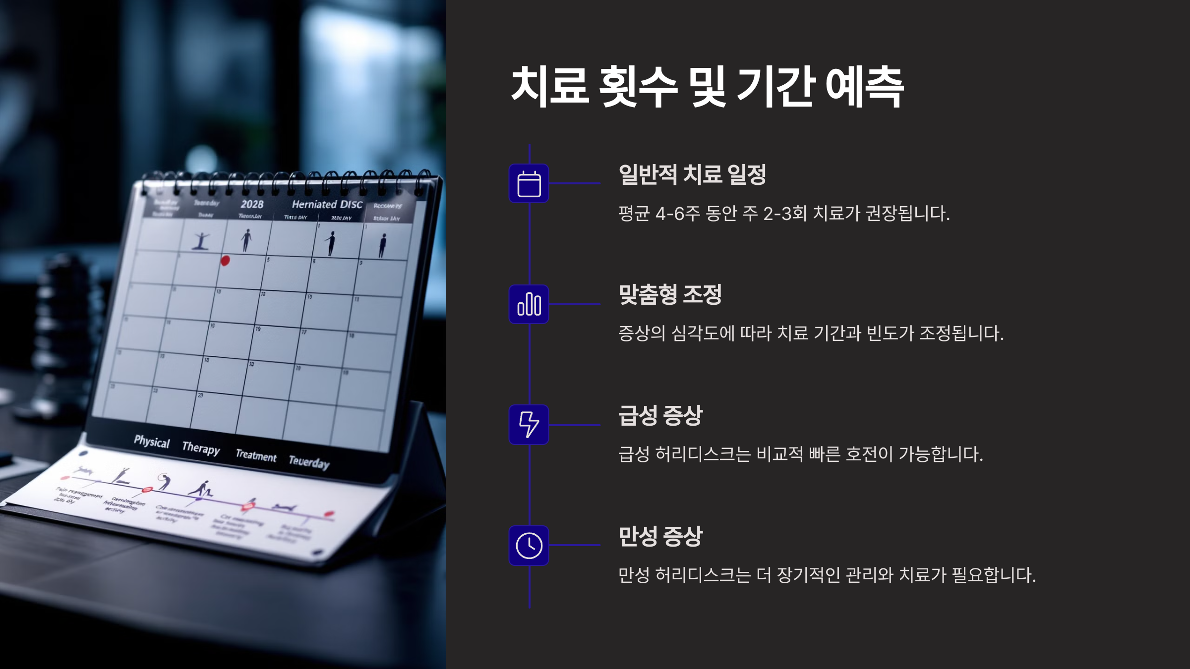 만약 통증이 심하거나 오랫동안 방치한 디스크라면 치료 기간도 3개월 이상 걸릴 수 있어요. 반면, 조기에 발견하고 치료받으면 1~2개월 안에 증상 완화가 가능해요.