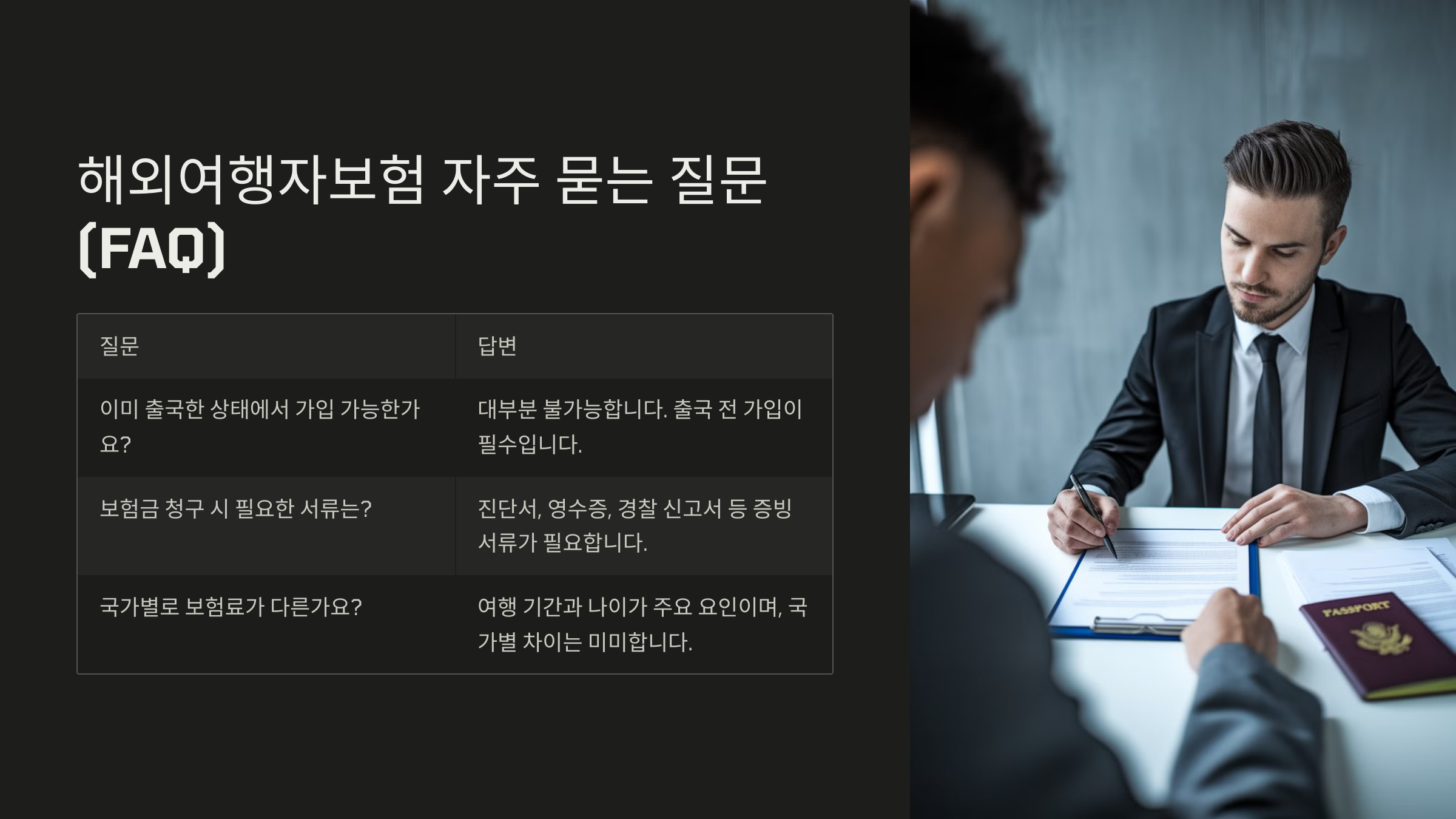 이제 마지막으로, 사람들이 자주 묻는 해외여행자보험 관련 질문을 FAQ로 정리해 볼게요! 💡
