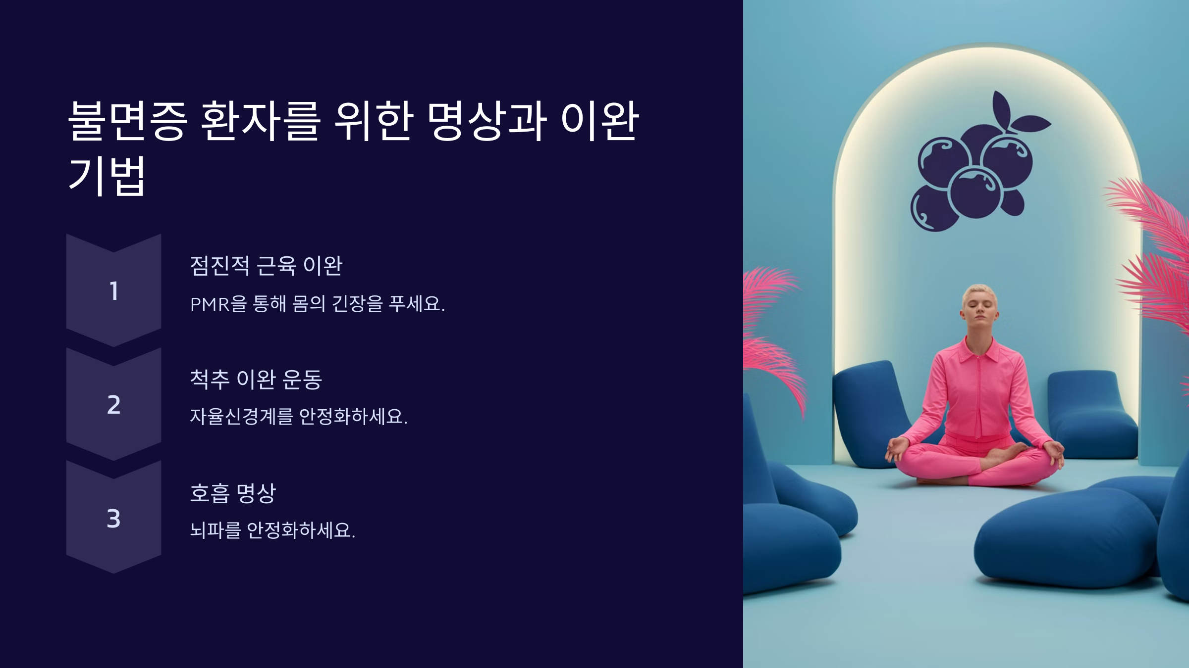 이완 기법을 실천하면 불면증이 완화되고 몸이 자연스럽게 잠들 준비를 하게 돼요. 오늘부터라도 짧은 명상이나 호흡 운동을 시도해보는 건 어때요? 😊