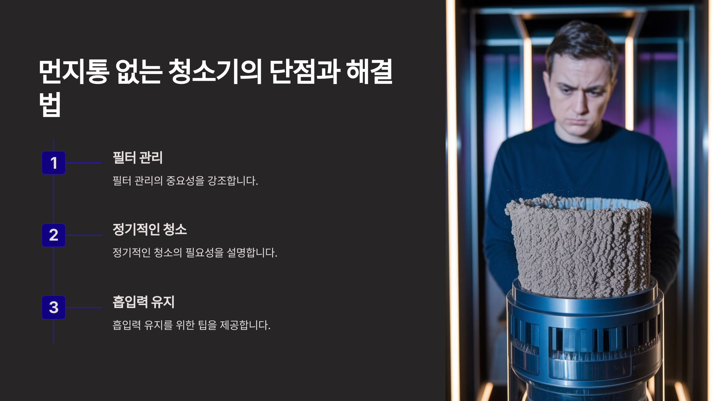 이런 단점만 잘 관리하면 먼지통 없는 청소기는 매우 실용적이에요! 😊