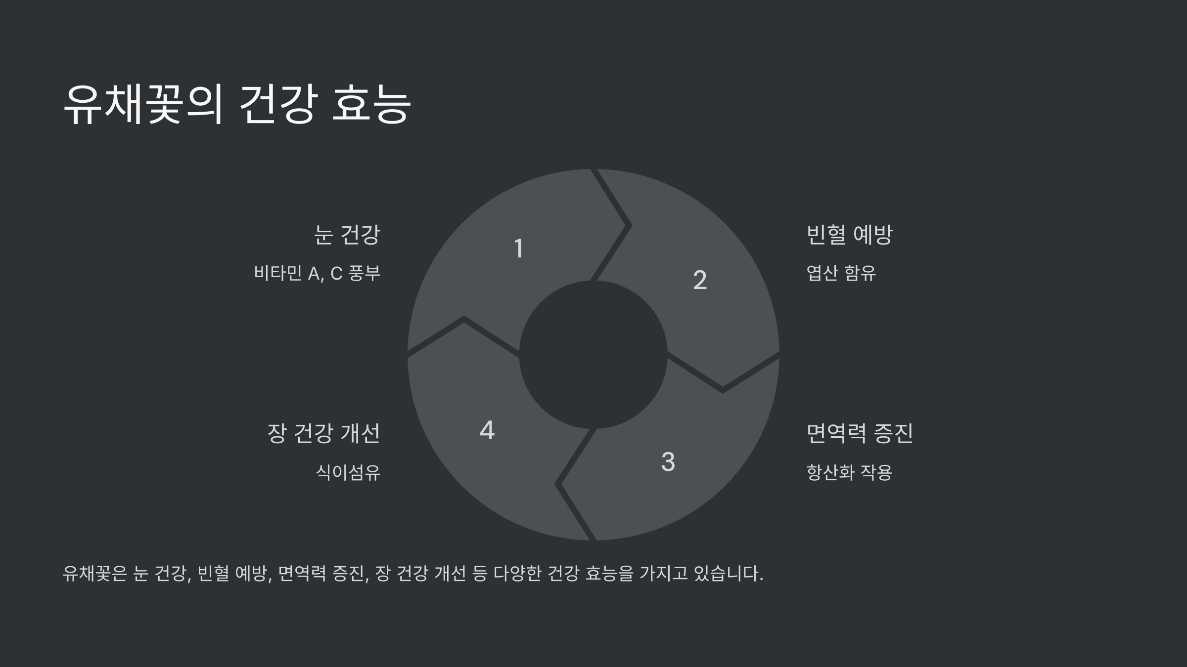 유체꽃은 단순히 아름다운 경관을 제공하는 꽃이 아니에요. 이 꽃은 건강에도 좋은 효능을 가지고 있어서 다양한 방식으로 활용될 수 있어요. 특히 항산화 성분과 비타민이 풍부해서 면역력 강화에 도움을 줄 수 있답니다.