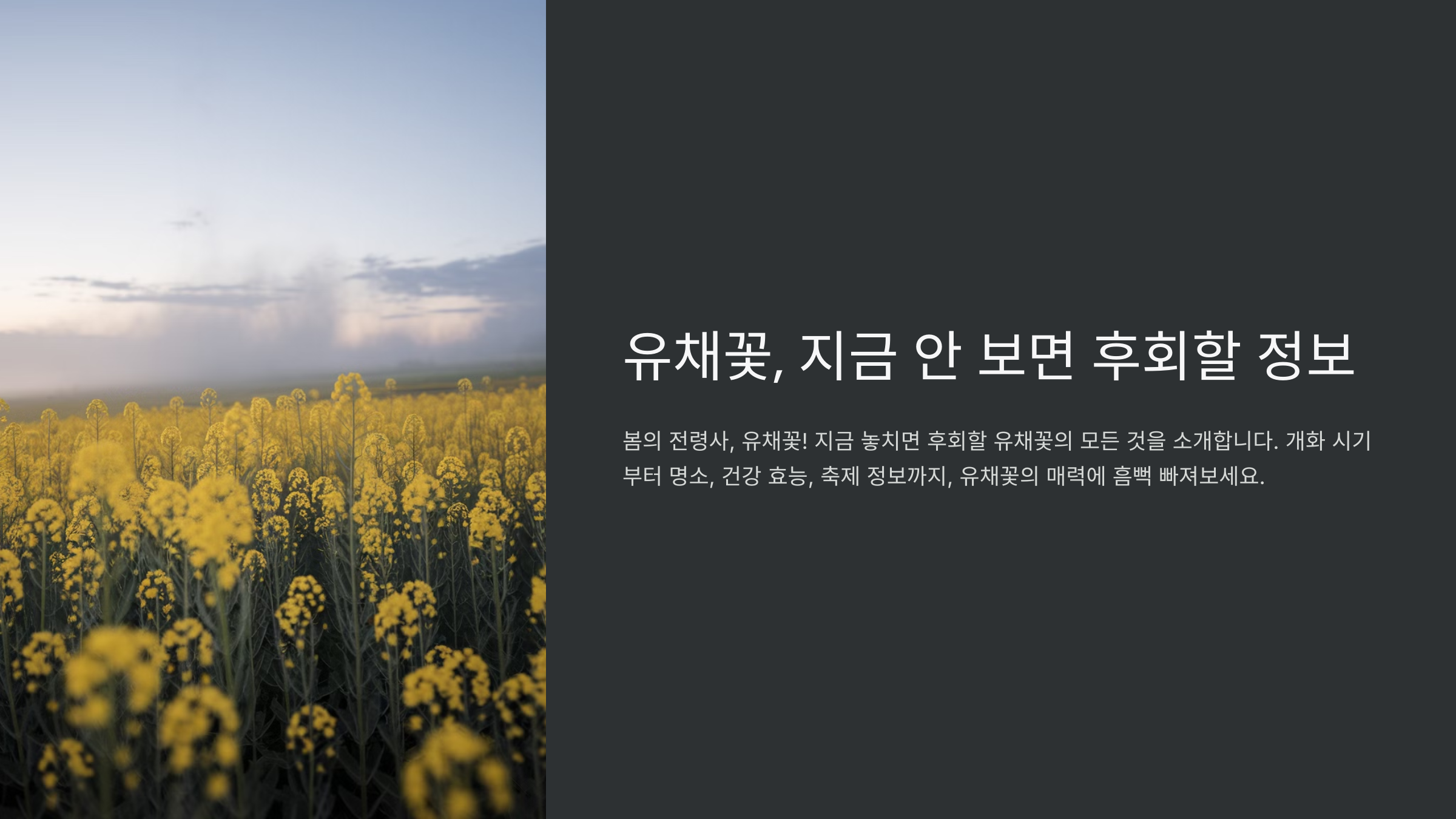 하지만 유채꽃과 헷갈리기 쉬워요! 유체꽃은 사실 유채꽃의 또 다른 이름이지만, 특정 품종을 지칭하기도 해요. 이 글에서는 유체꽃의 매력을 깊이 파헤쳐볼게요. 언제 어디서 보는 게 가장 아름다운지, 어떻게 활용할 수 있는지, 그리고 축제까지! 놓치면 후회할 유체꽃의 모든 것을 알려드릴게요. 😊