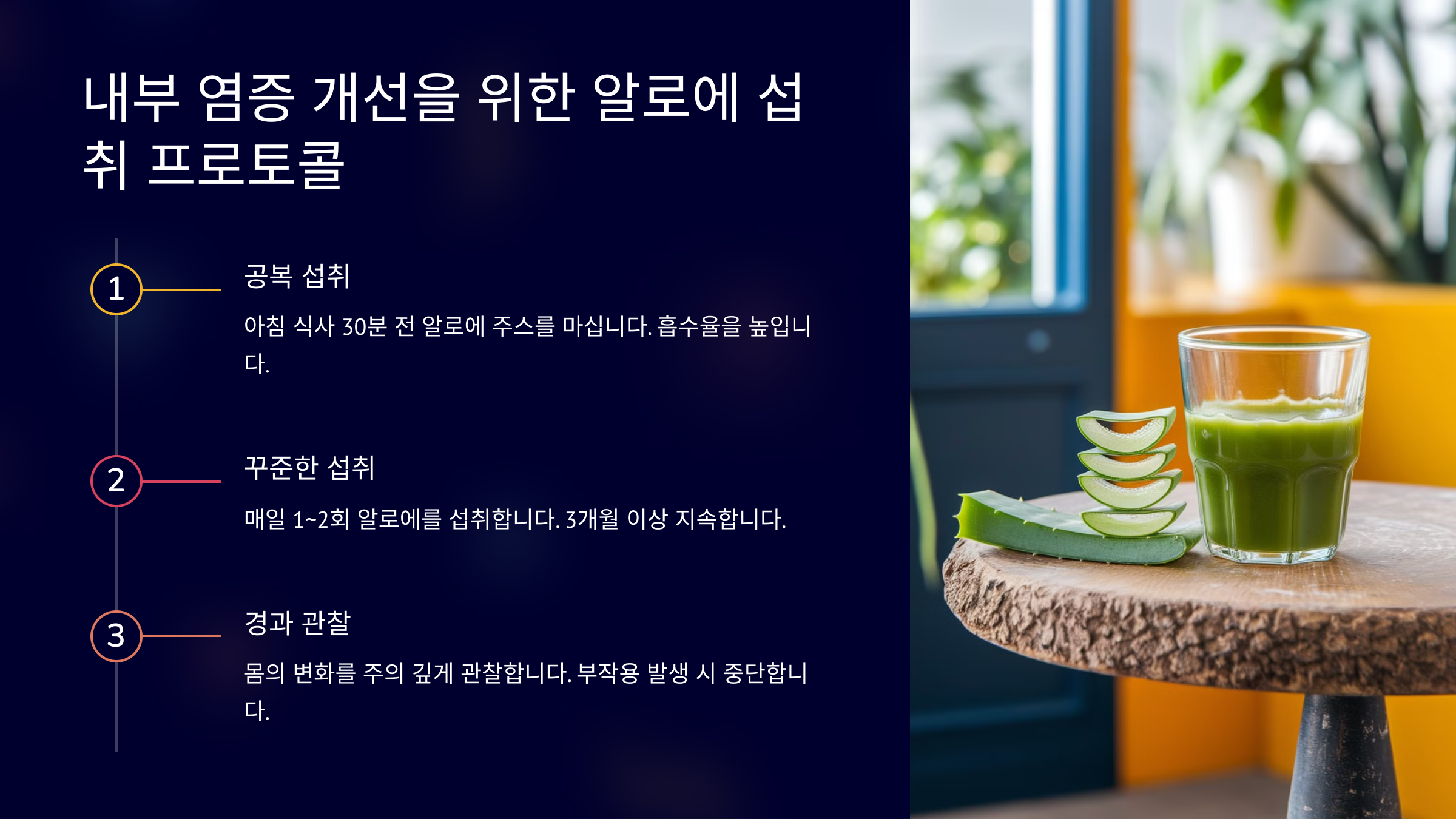 이제 **내부 염증 완화를 위한 알로에 섭취법**을 알아볼까요? 🥤