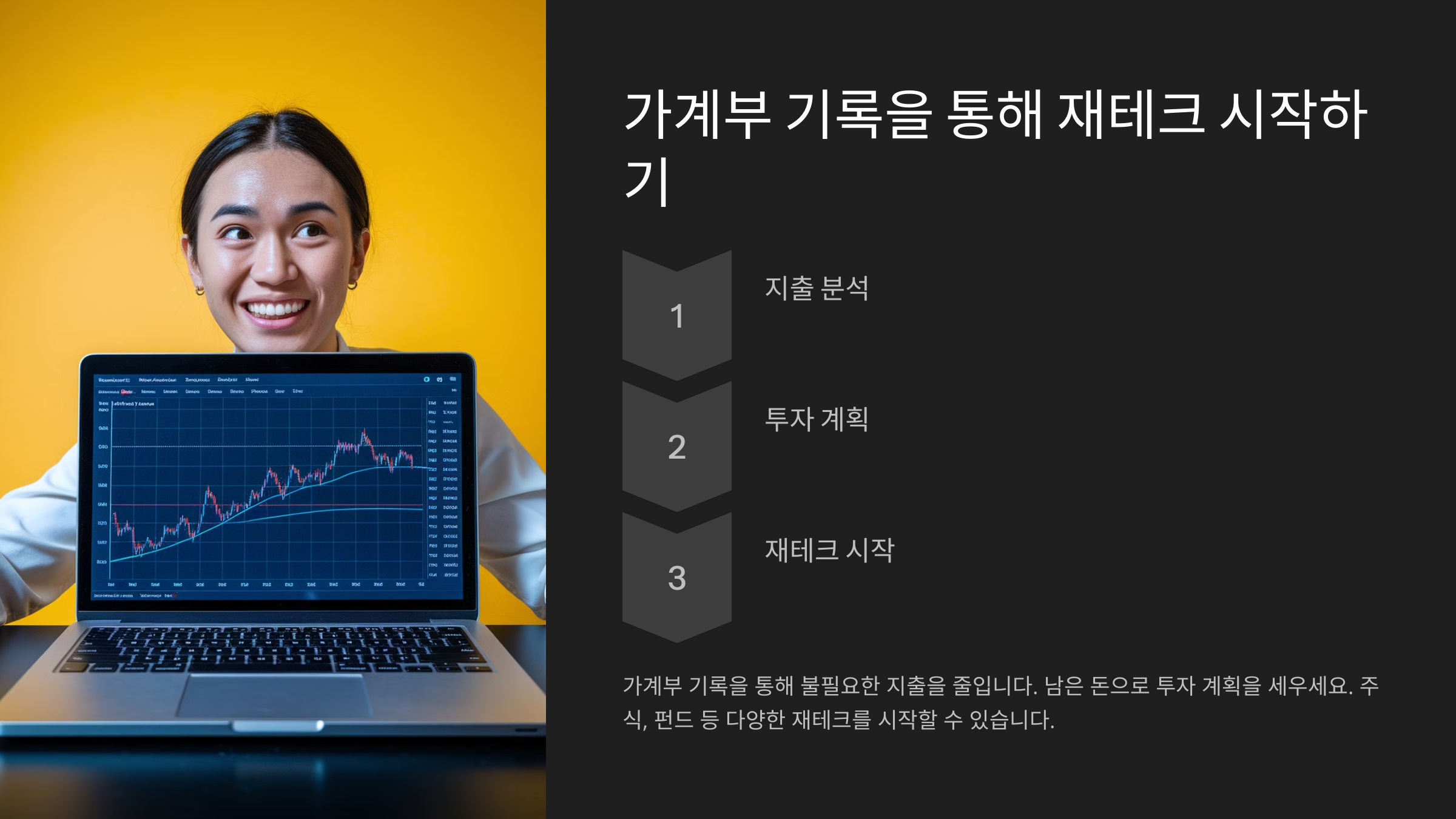가계부를 꾸준히 쓰다 보면 재테크로 연결할 기회가 많아져요. 자신의 소비 패턴을 분석해서 불필요한 지출을 줄이면, 그 돈을 투자로 돌릴 수 있기 때문이에요.
