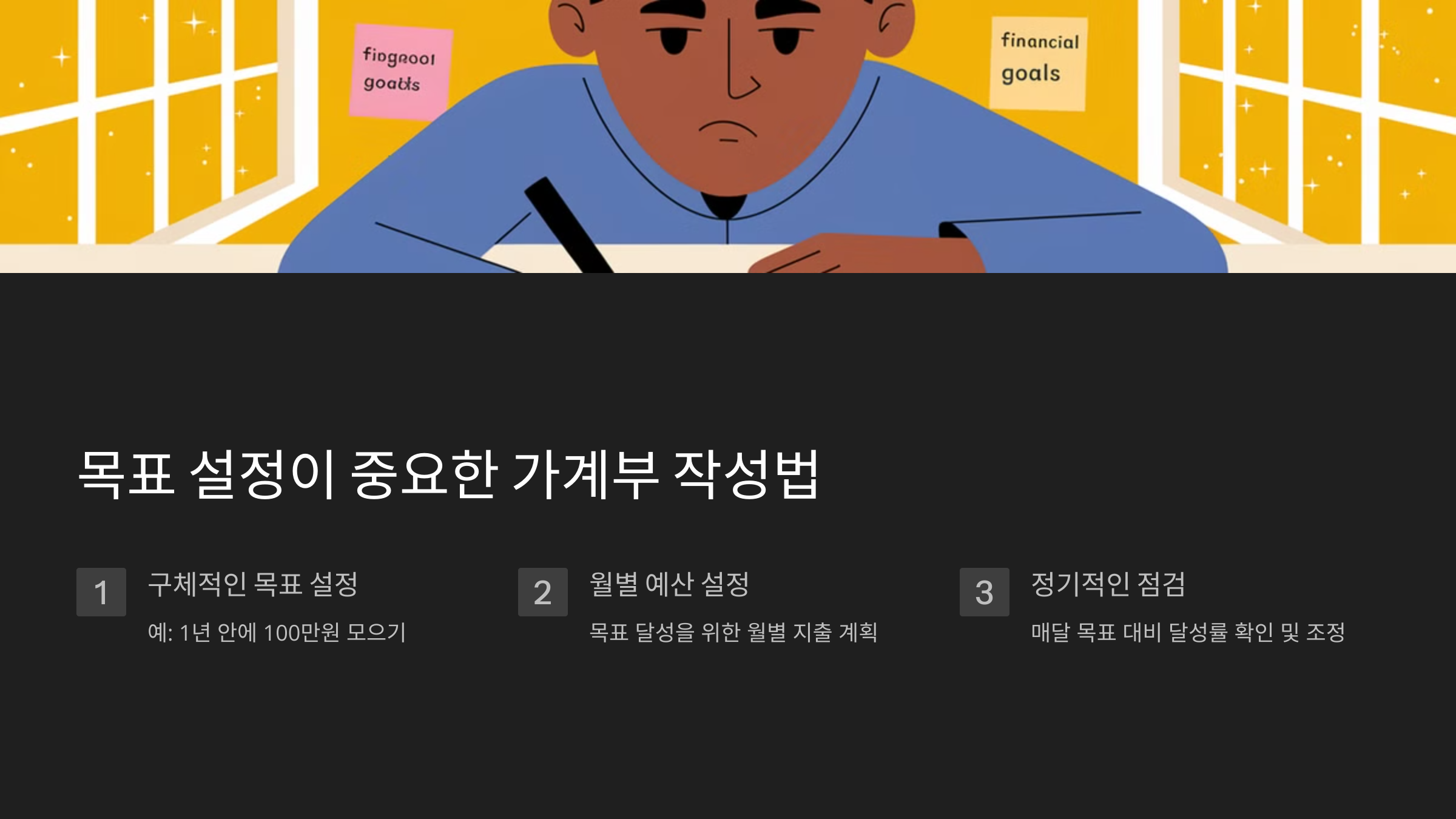 가계부를 작성할 때 목표를 정하는 것이 중요한 이유는 명확해요. 목표가 없으면 단순히 숫자만 기록하는 데 그치고, 결국 가계부를 쓰다가 포기하게 될 가능성이 커요. 하지만 목표가 있으면 동기 부여가 되어 꾸준히 작성할 수 있죠.