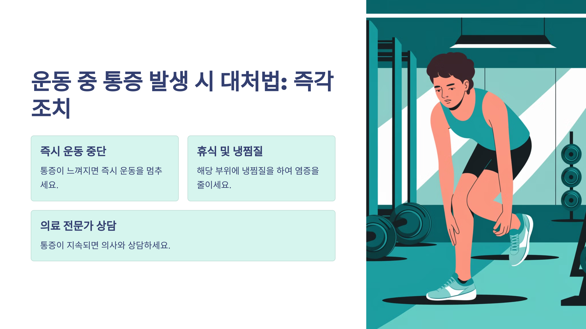 - 🛑 즉시 운동 중단: 통증이 느껴지면 무리하지 말고 바로 멈추세요.