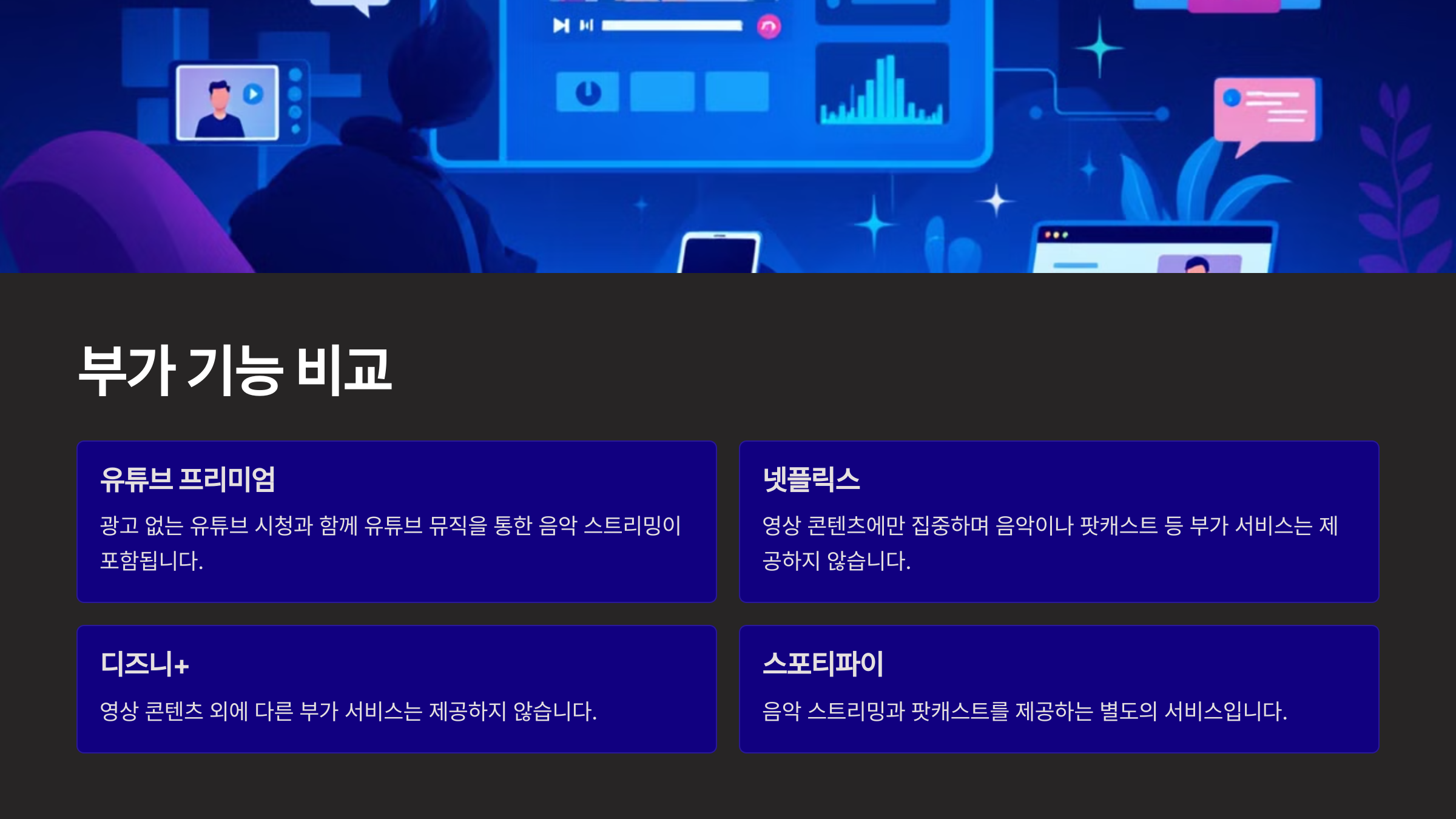 ✅ 다음 섹션에서 광고 없는 유튜브 vs 넷플릭스 오리지널 콘텐츠 비교를 살펴볼게요!