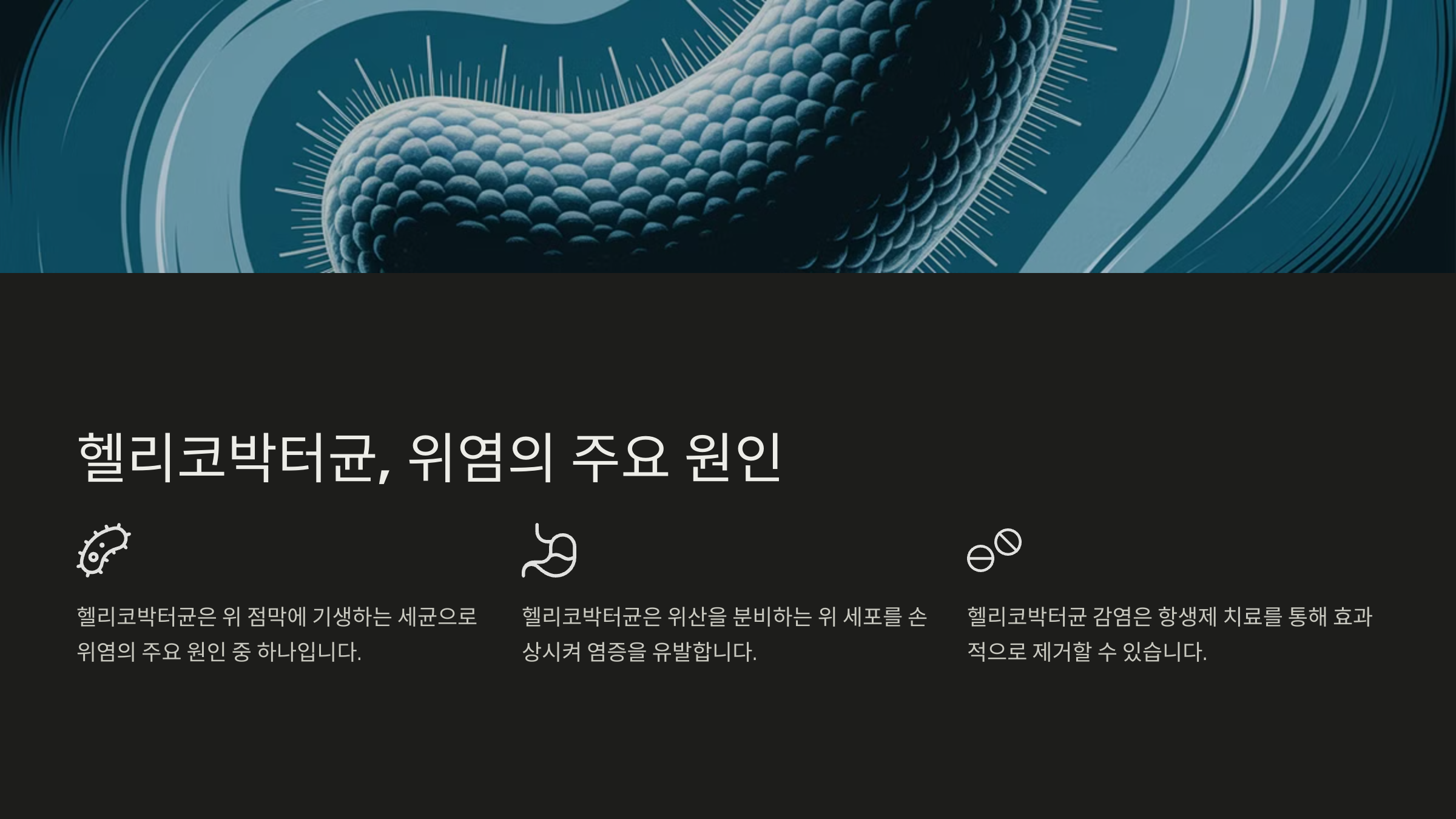 헬리코박터 파일로리균(Helicobacter pylori)은 위염의 주요 원인 중 하나예요. 이 균은 위 점막에 감염되어 염증을 유발하고, 장기간 방치하면 위궤양이나 위암으로 발전할 수도 있어요.