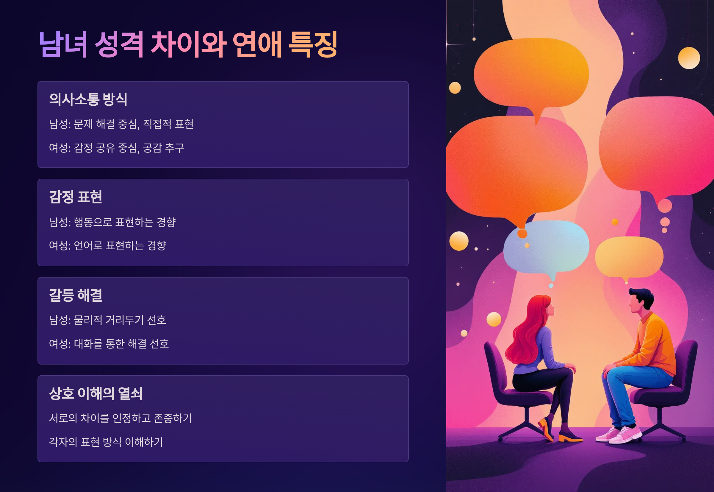 다음 섹션에서는 남녀 성격 차이에 따른 연애 특징을 알아볼게요! 👇