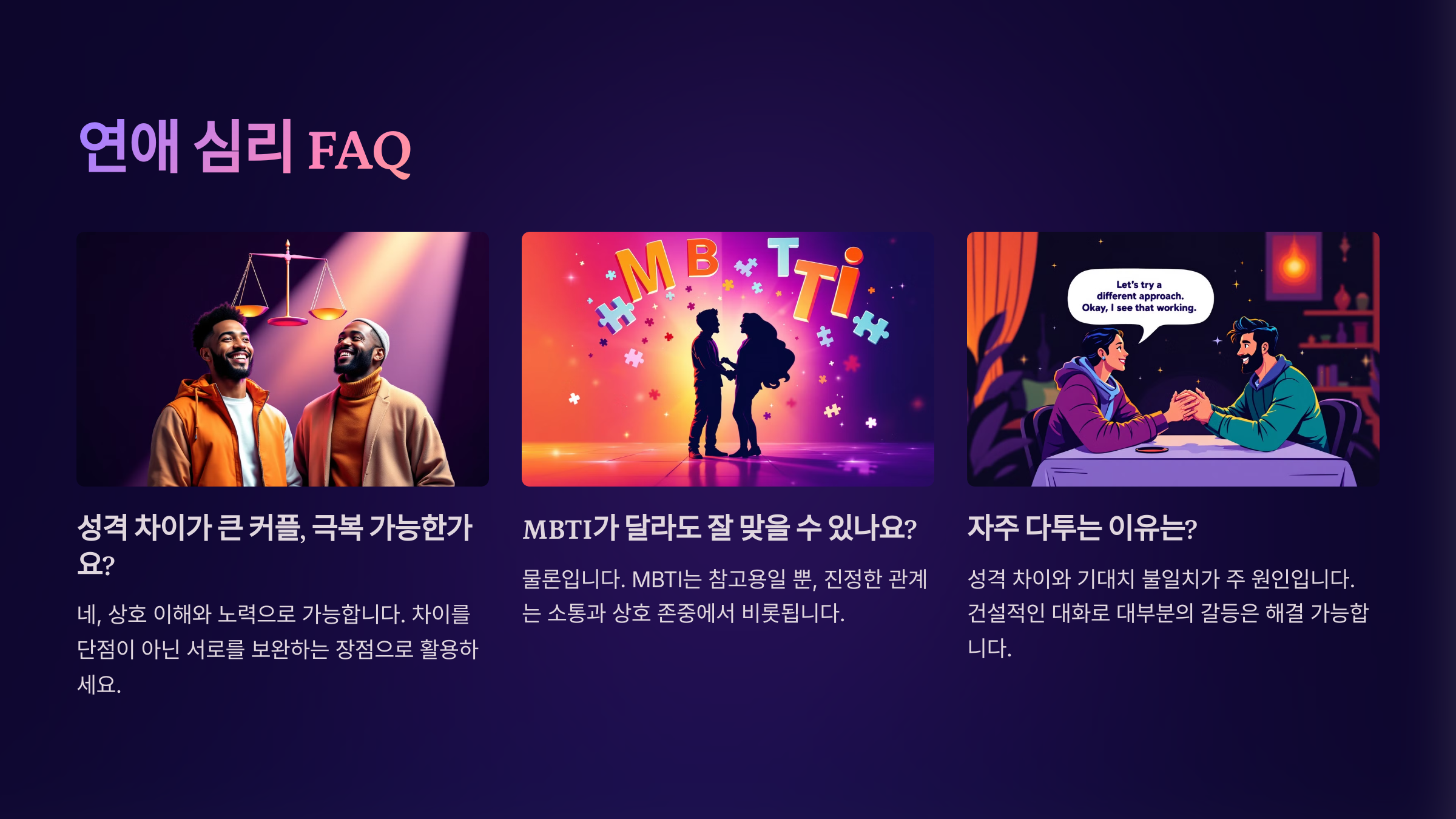 | 대화 스타일 | 문제 해결 중심 🔧 | 공감과 감정 공유 💕 |