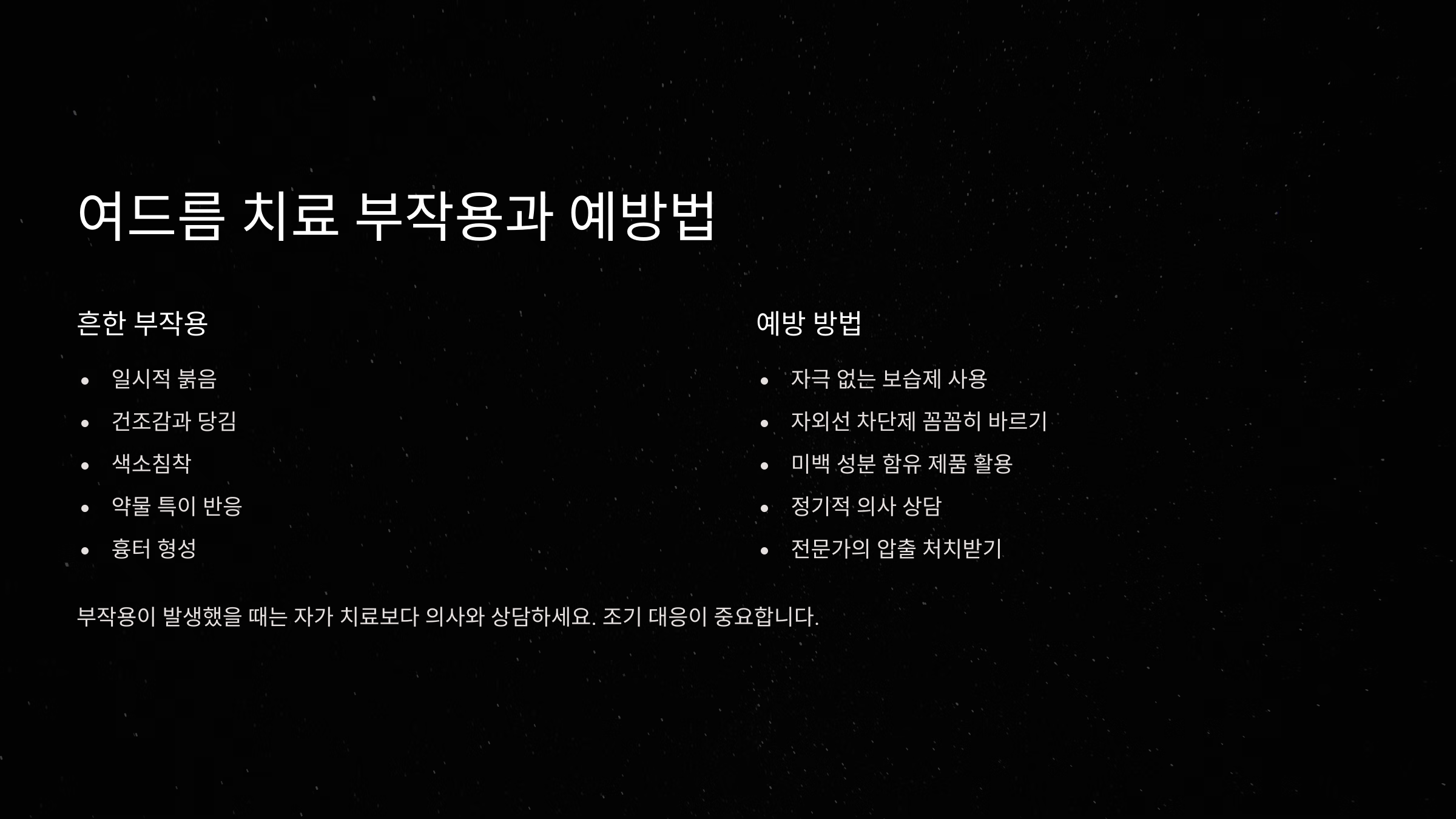 | 색소 침착 | 자외선 차단 필수 |