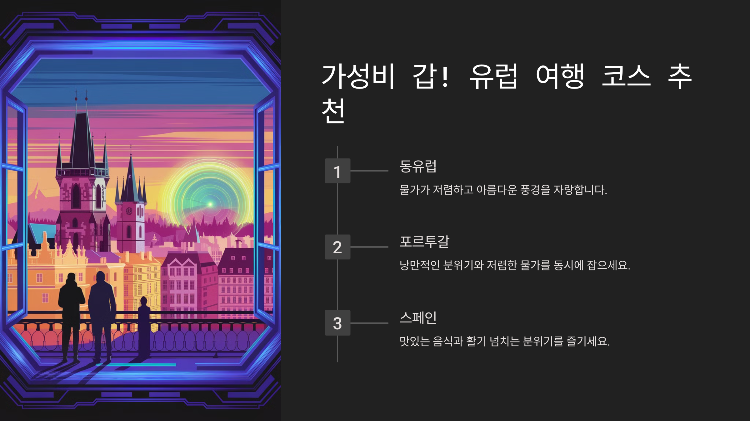 이제 가성비 최고인 유럽 여행 코스를 추천해 볼게요! 🚀