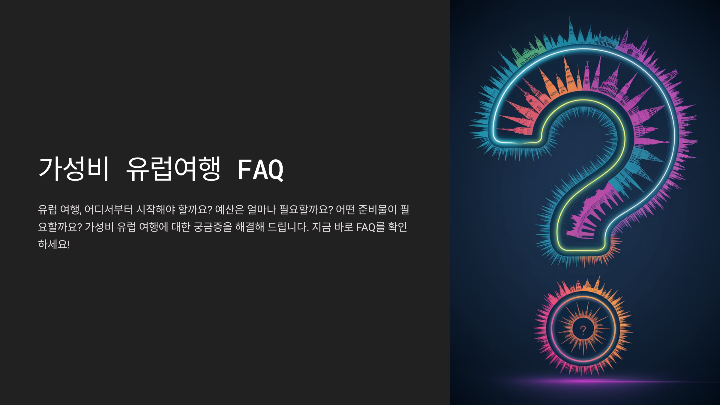 이제 유럽 여행을 더욱 **저렴하게 즐길 준비 완료!** 🎉 마지막으로, 가성비 유럽 여행과 관련한 **자주 묻는 질문(FAQ)**을 확인해볼까요? 😉