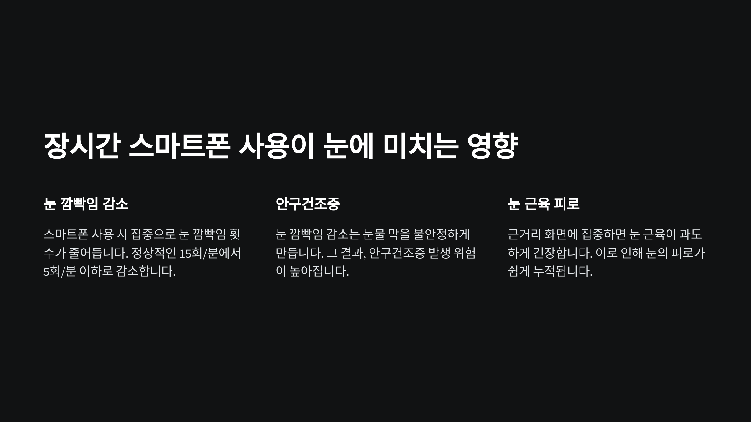 스마트폰 사용 습관 | 눈에 미치는 영향 |