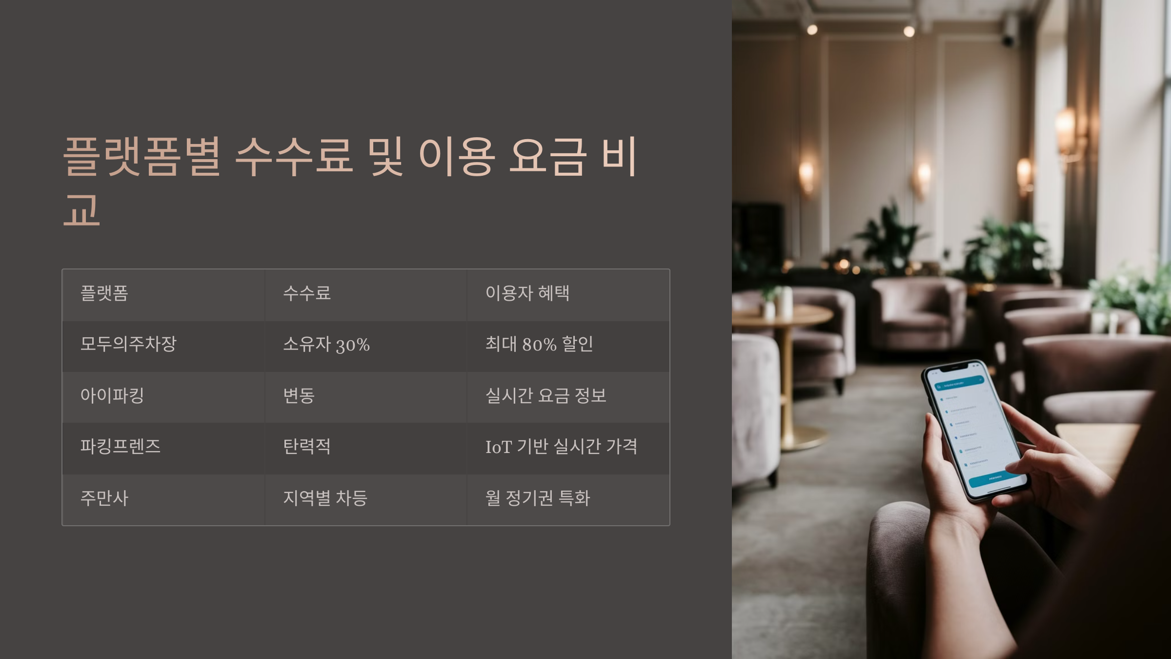 주차장 공유 플랫폼을 이용할 때 가장 중요한 요소 중 하나는 요금과 수수료예요. 각 플랫폼마다 요금 체계와 수수료 방식이 다르기 때문에 꼼꼼히 비교해야 해요. 😃