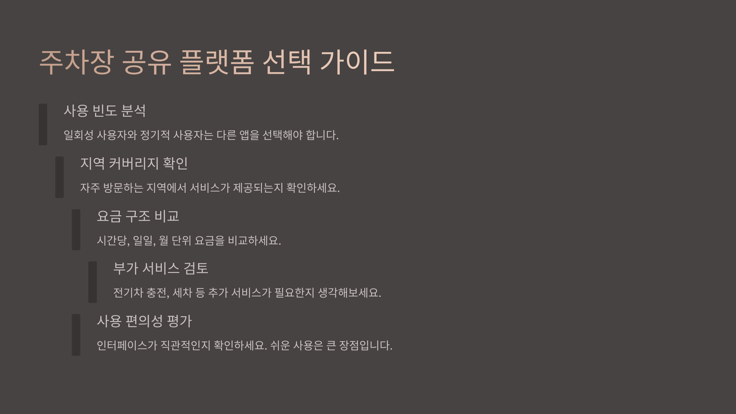 이제, 주차장 공유 플랫폼을 선택할 때 고려해야 할 요소를 정리해 볼게요! 🧐
