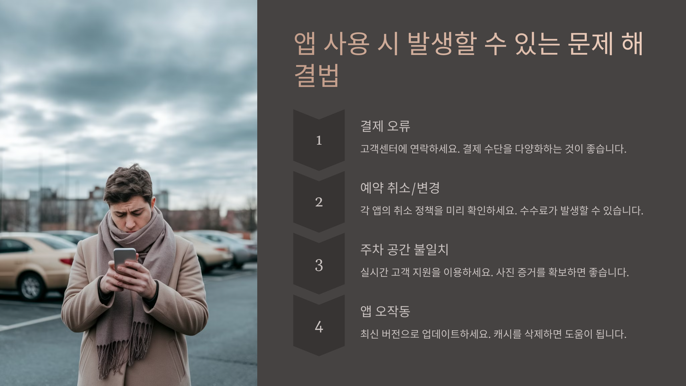 주차장 공유 앱을 사용하다 보면 예상치 못한 문제가 발생할 수 있어요. 하지만 대부분의 문제는 간단한 해결 방법이 있으니 미리 알아두면 당황하지 않고 해결할 수 있어요. 😊