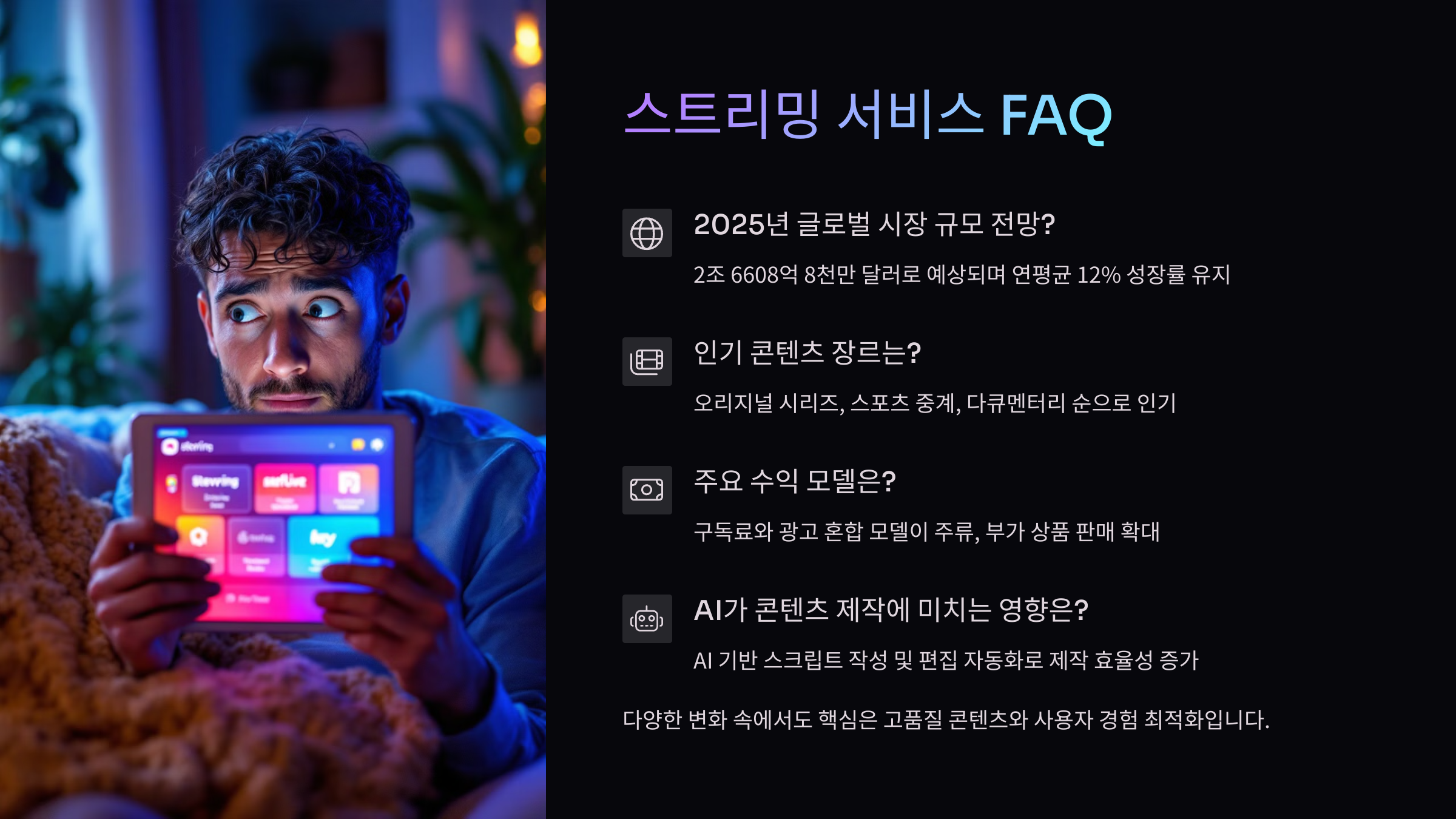 다음 섹션에서는 스트리밍 서비스 관련 자주 묻는 질문(FAQ)을 살펴볼게요!
