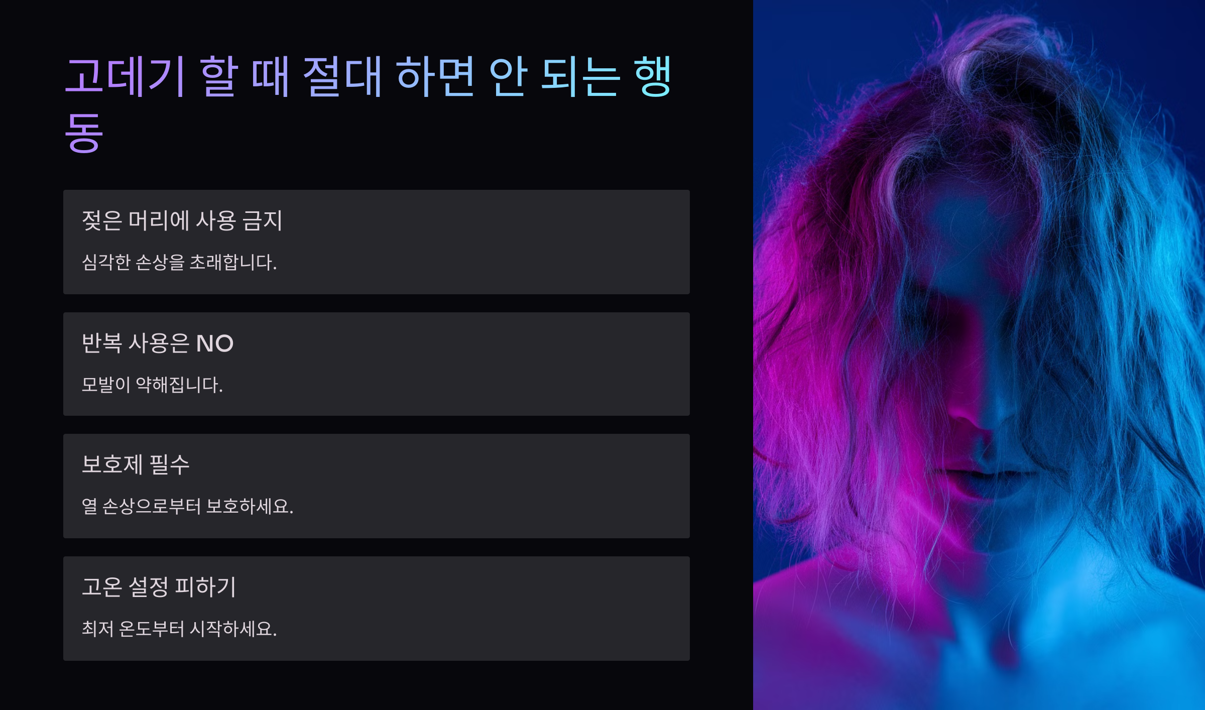 이제 고데기 사용할 때 하면 안 되는 행동도 함께 알아볼까요? 🚫