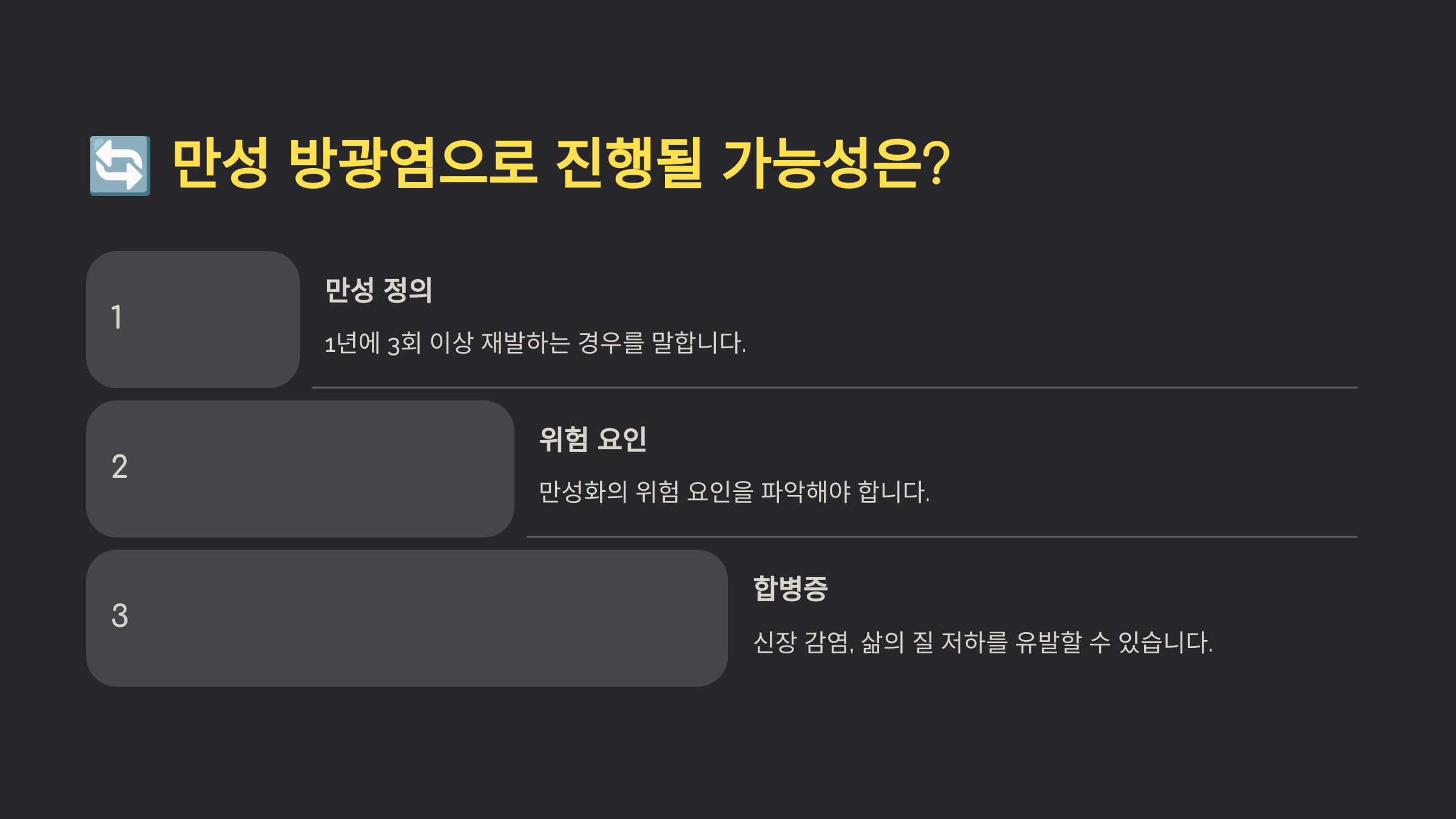 💡 다음 섹션에서는 방광염이 만성으로 진행될 가능성에 대해 알아볼게요!