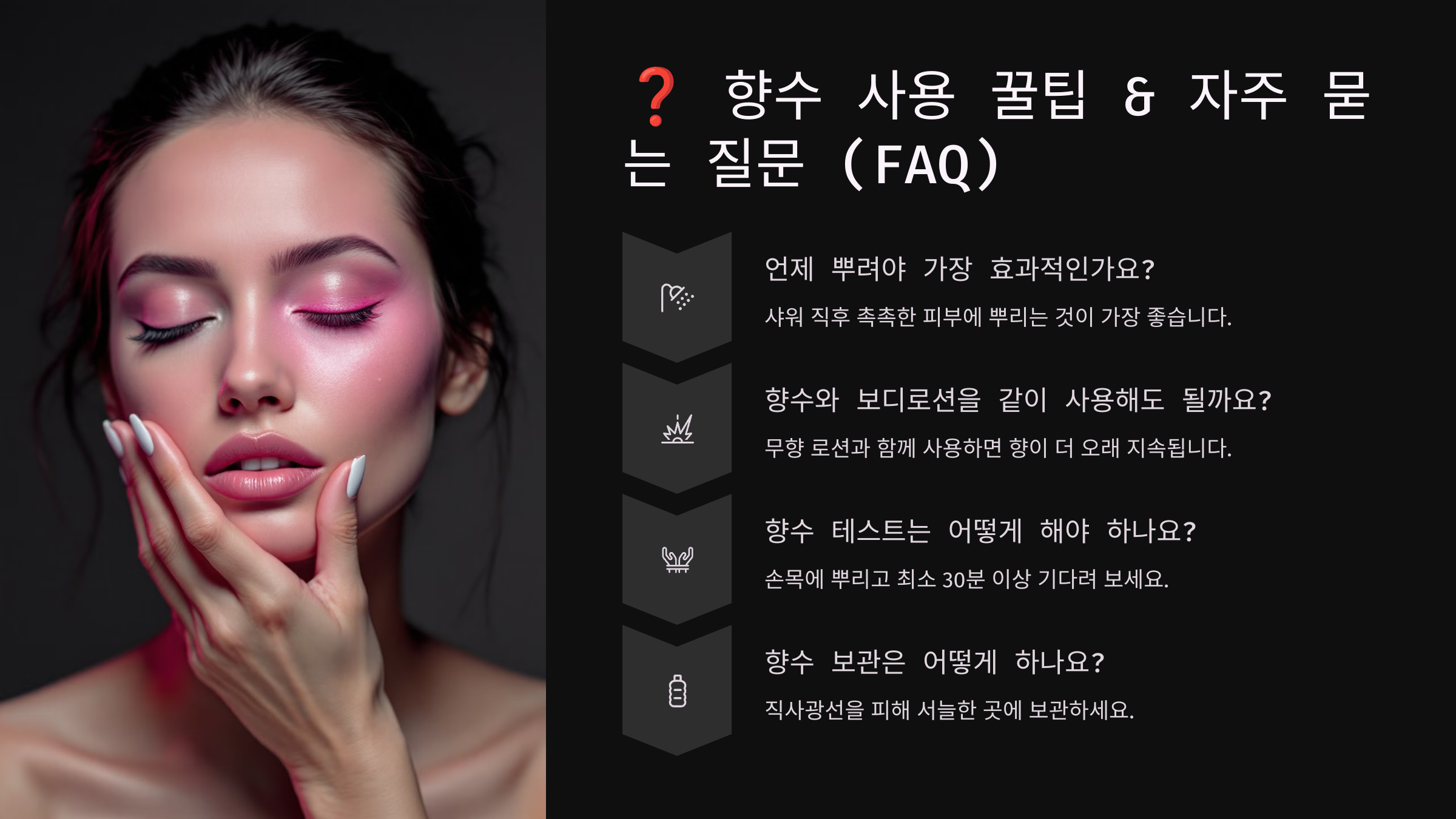 이제 마지막으로, 향수를 더 오래 유지하는 꿀팁과 자주 묻는 질문(FAQ)을 확인해볼까요? ❓