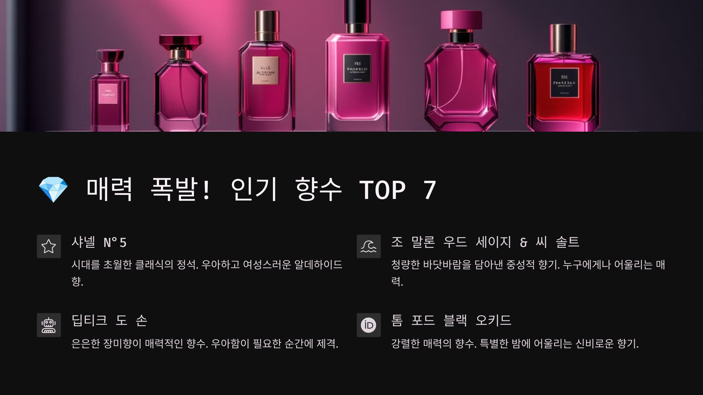 💎 매력 폭발! 인기 향수 TOP 7