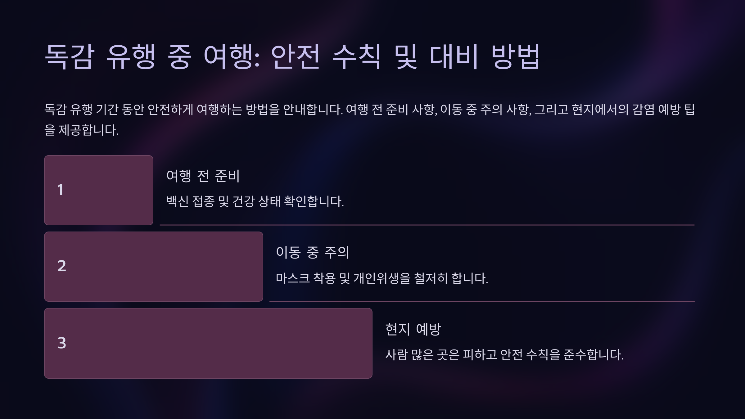 독감 유행 시기에는 평소보다 더 신경 써서 여행을 준비해야 해요. 미리 대비하고 예방 수칙을 잘 지킨다면 안전하고 즐거운 여행을 할 수 있을 거예요! 🚀