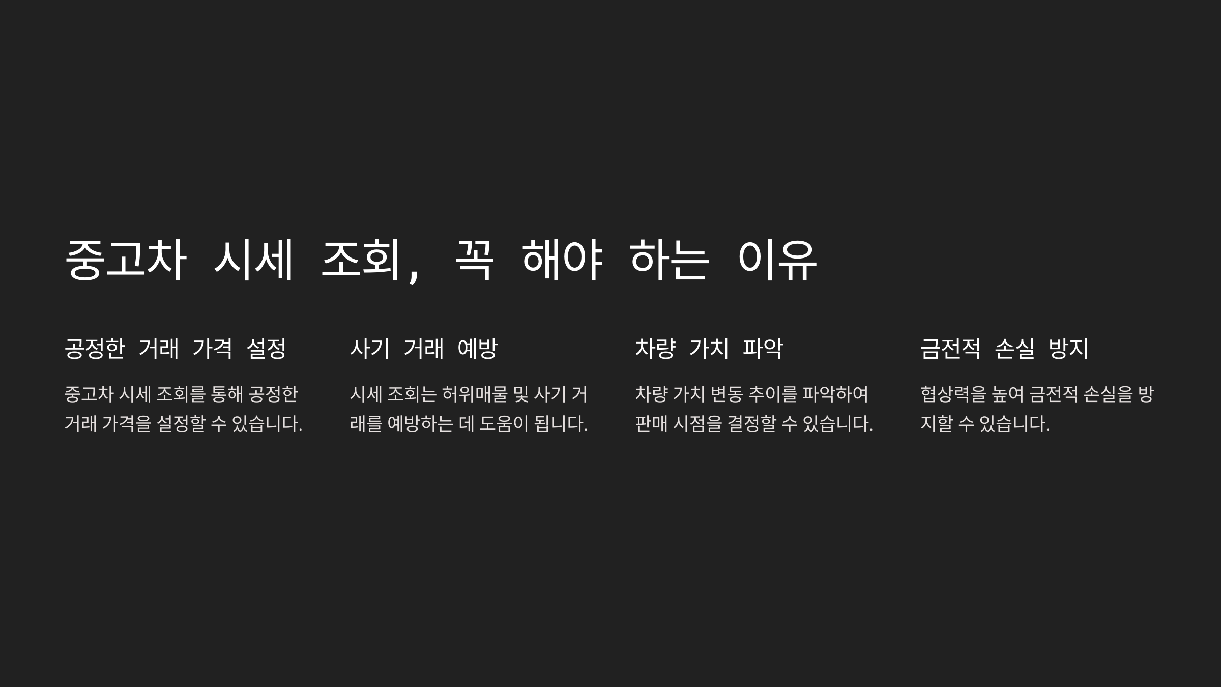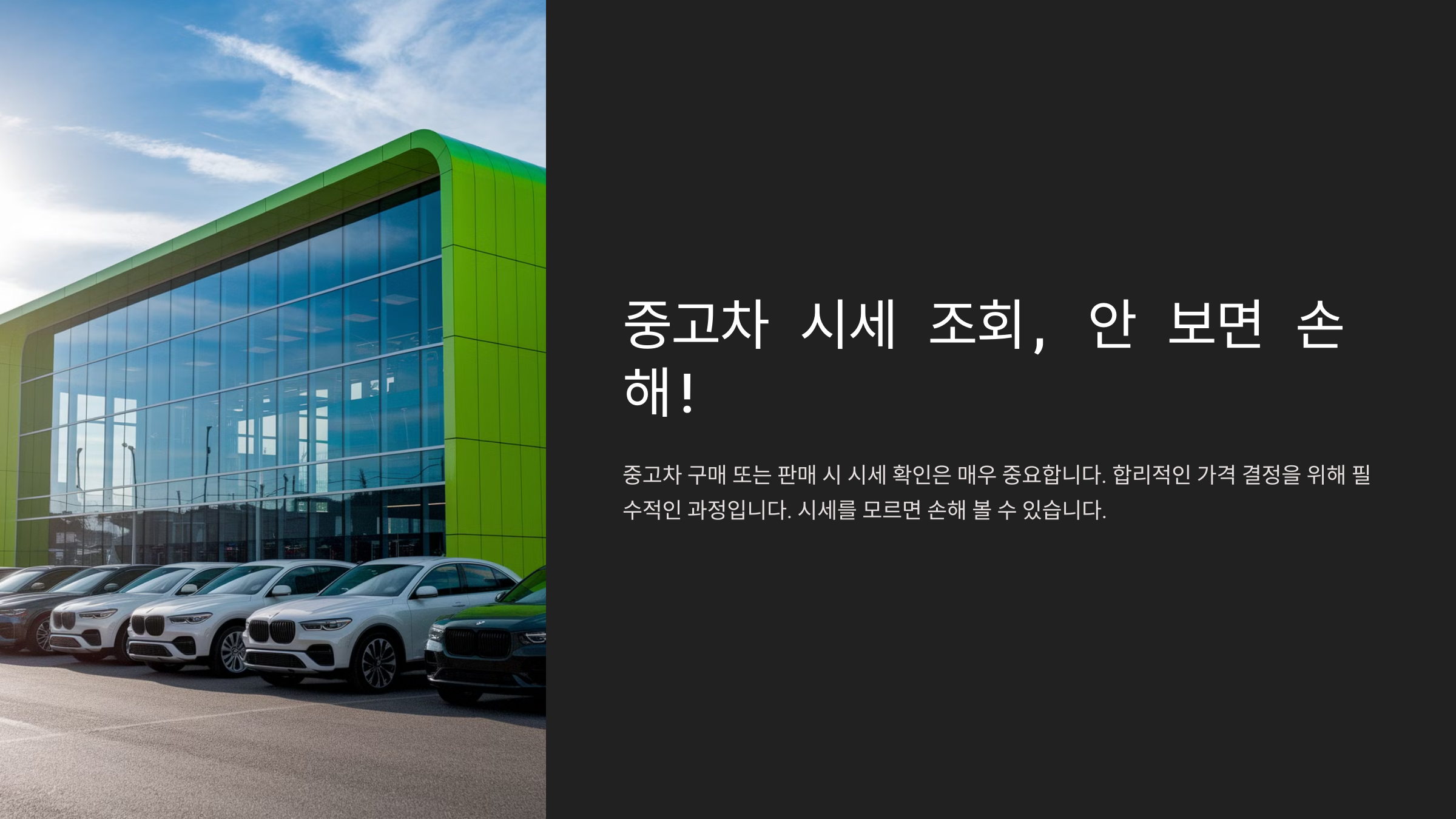 1. **바가지 방지** 🚫 중고차 시장에는 호갱(?)을 노리는 사람들이 많아요. 시세보다 훨씬 비싸게 부르는 딜러나 개인 판매자들도 있기 때문에, 시세를 모르면 바가지를 쓸 수 있어요.