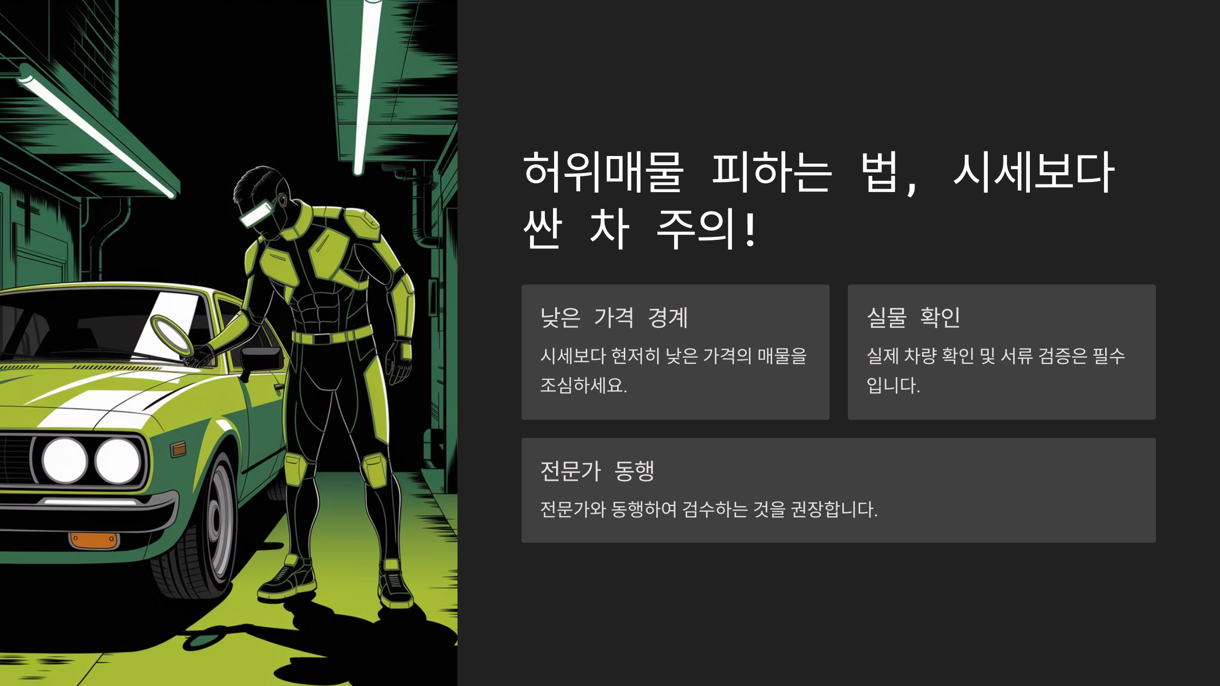 😱 중고차를 살 때 가장 조심해야 할 게 바로 **허위매물**이에요. "이 가격이면 무조건 사야지!" 하는 마음으로 접근했다가 낭패를 볼 수도 있어요.