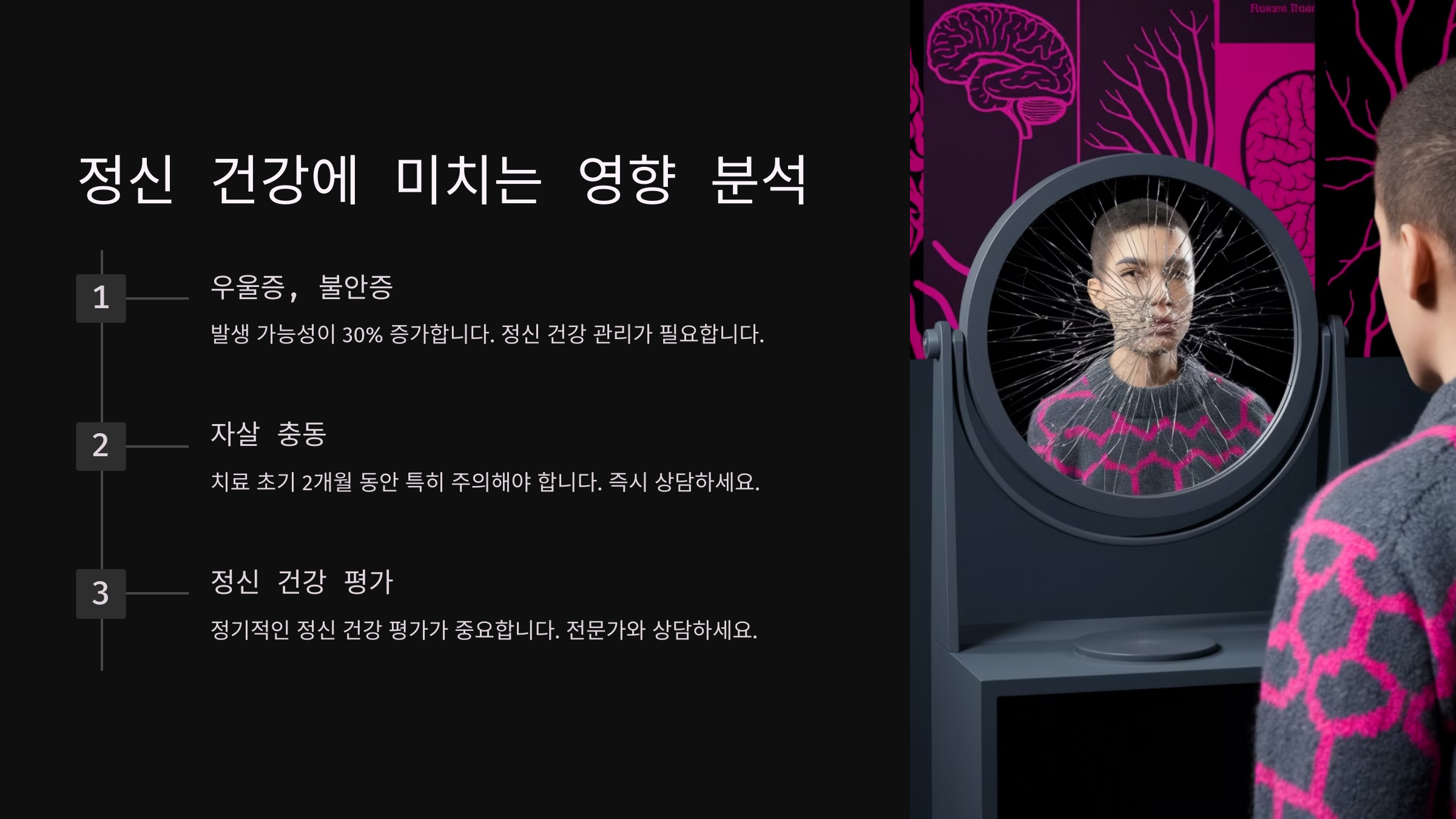 3. 기억력 저하 🧠: 약물에 따라 단기 기억력이 저하될 수 있어요. 이럴 땐 뇌 건강을 위한 오메가-3 섭취나 두뇌 활동을 활발히 하는 것이 도움될 수 있어요.