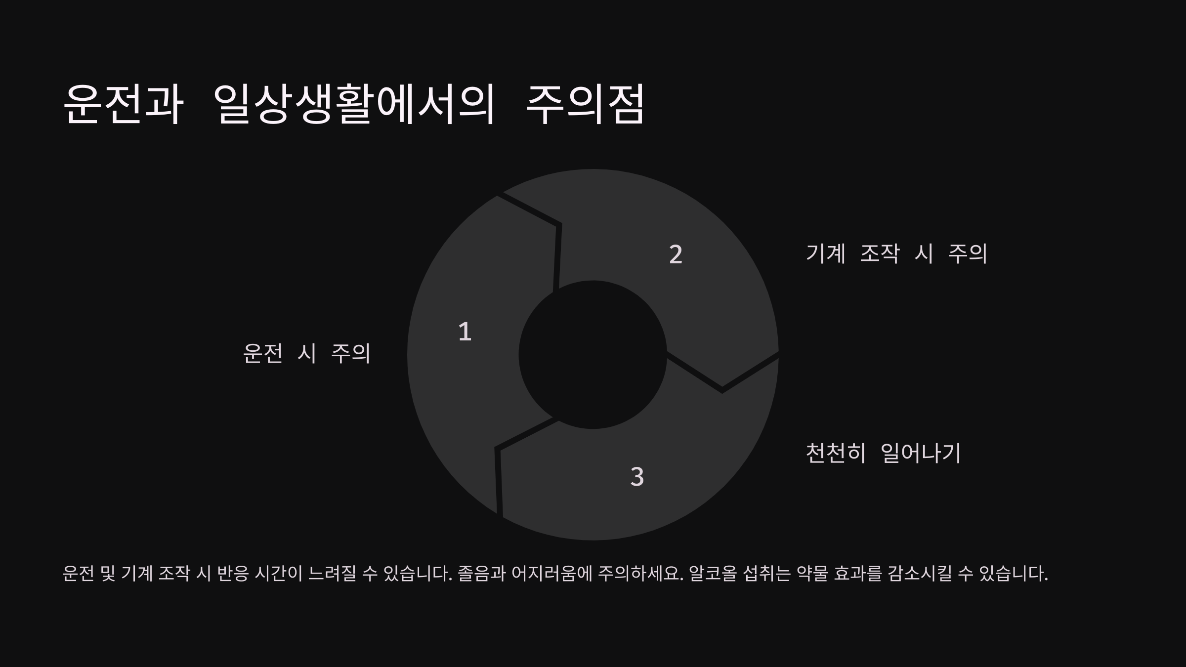 - 졸음이나 어지러움이 느껴지면 즉시 휴식을 취하세요.