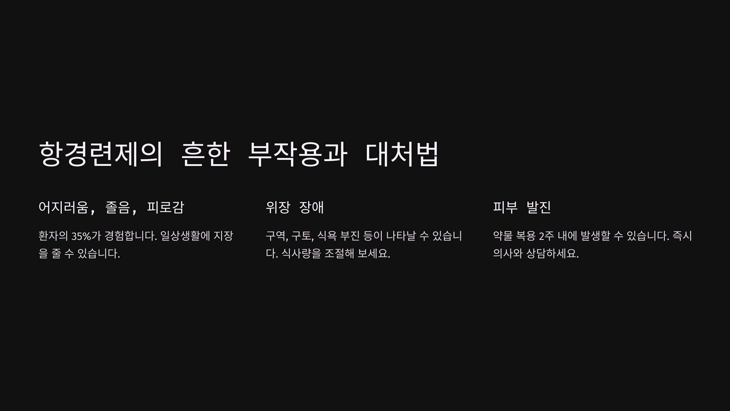 항경련제는 뇌 신경 활동을 안정시키는 데 필수적인 약물이지만, 다양한 부작용을 동반할 수 있어요. 무시하고 복용을 지속하면 건강에 심각한 영향을 미칠 수 있기 때문에 반드시 관리가 필요하답니다.🤔