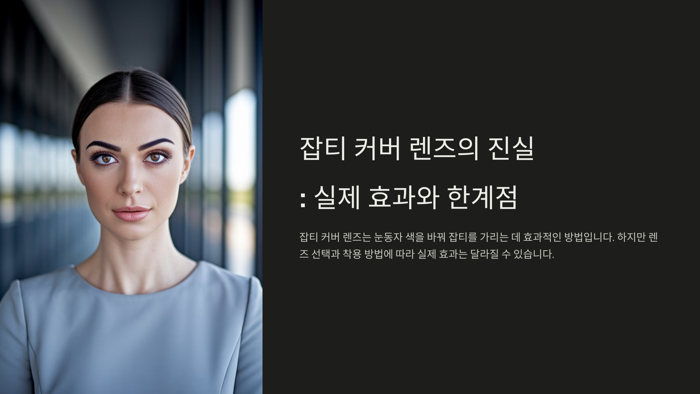 🎨 컬러 대비 활용하기: 자신의 눈동자 색과 반대되는 색상을 사용하면 눈동자와 피부의 대비를 통해 잡티 커버 효과를 극대화할 수 있어요. 예를 들어, 짙은 눈동자에는 밝은 톤의 렌즈를, 밝은 눈동자에는 차분한 톤의 렌즈를 매치해보세요.