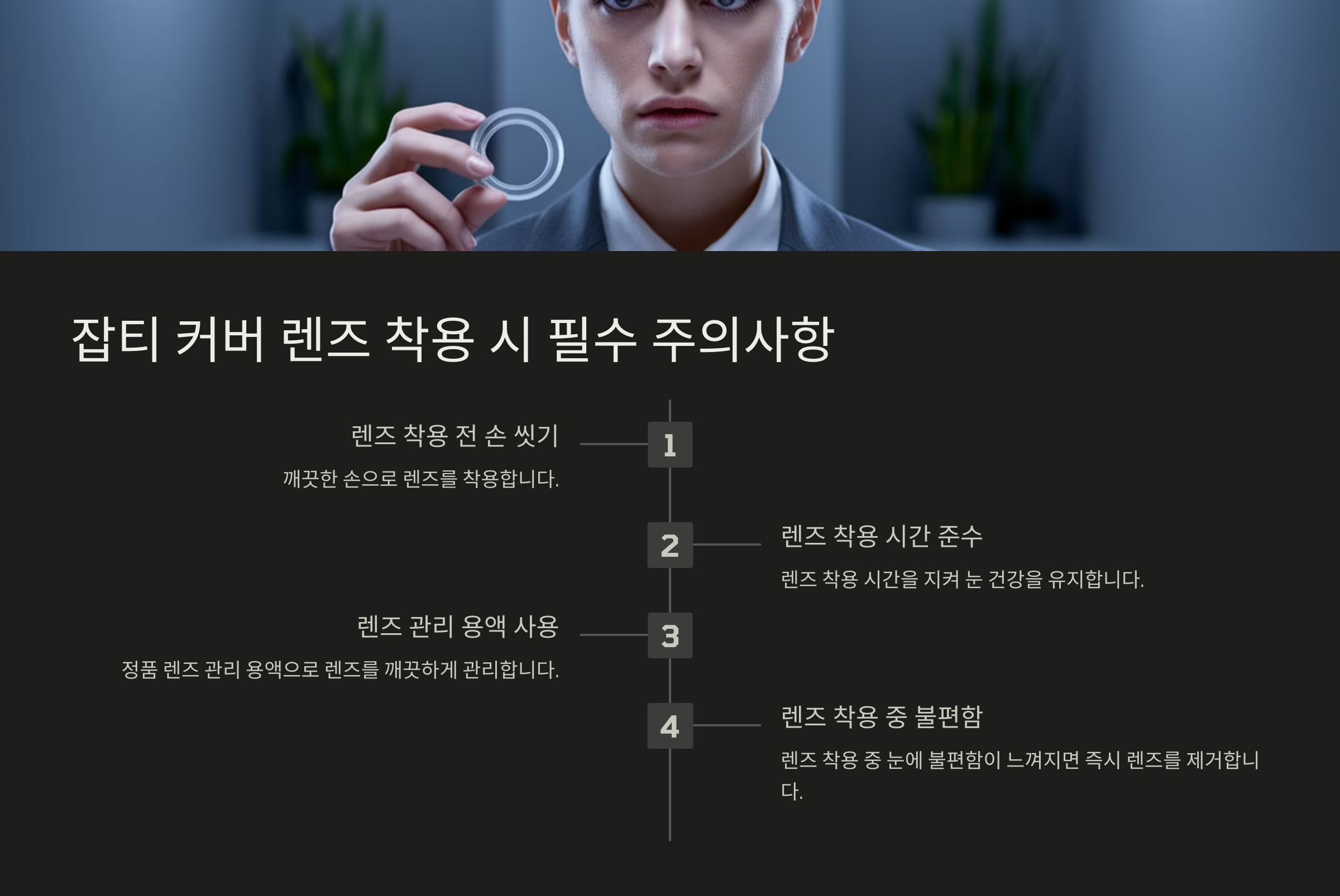 컬러 렌즈는 패션 아이템이지만, 잘못된 사용은 눈 건강에 악영향을 줄 수 있어요. 잡티 커버 효과를 극대화하면서도 눈 건강을 지키기 위해 반드시 주의해야 할 사항들을 정리했어요.