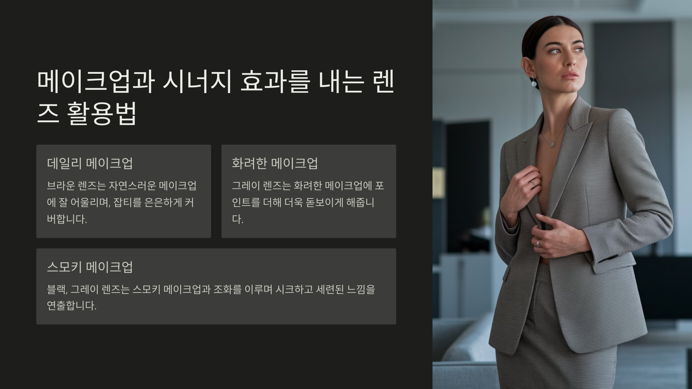 컬러 렌즈를 적절히 활용하면 피부 톤을 보정하면서도 스타일을 완성할 수 있어요! 😊